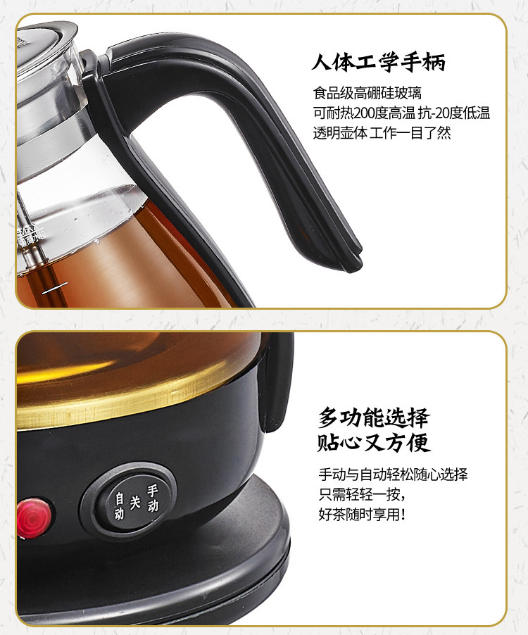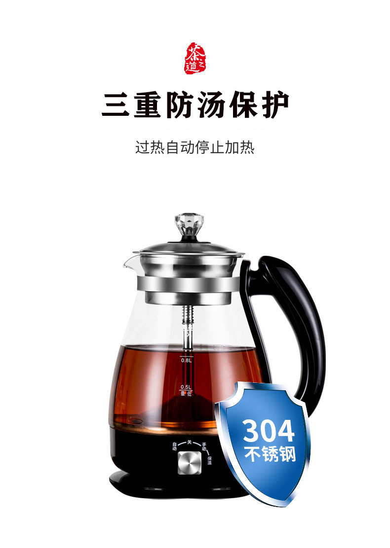 蒸汽煮茶 玻璃杯体 茶水分离 自动手动双档位 自动保温 带防干烧