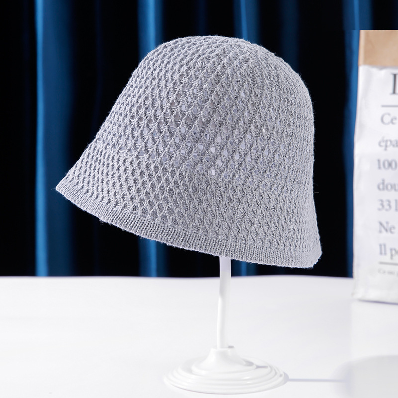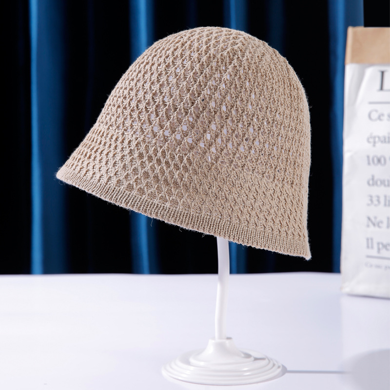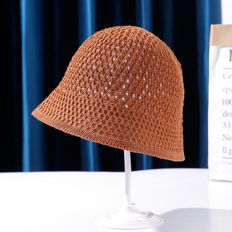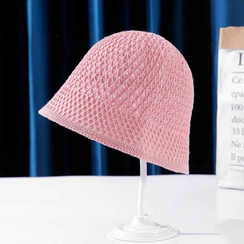 ins镂空夏季针织渔夫帽子女士日系水桶遮阳防晒透气网眼编织盆帽