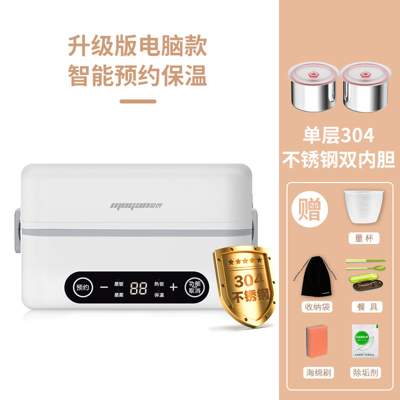 蒙得厂家直销智能电热饭盒保温加热双层多功能可预约学生上班带饭