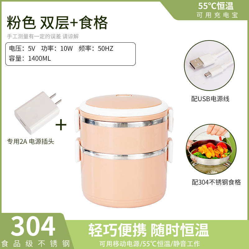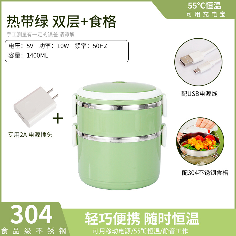 免注水电热饭盒USB保温学生304不锈钢便当上班族12V车载热饭神器