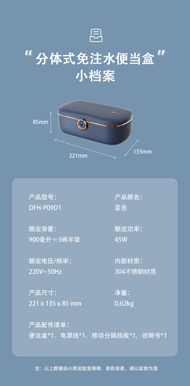 小熊电热饭盒免注水可插电加热热饭器DFH-P09D1