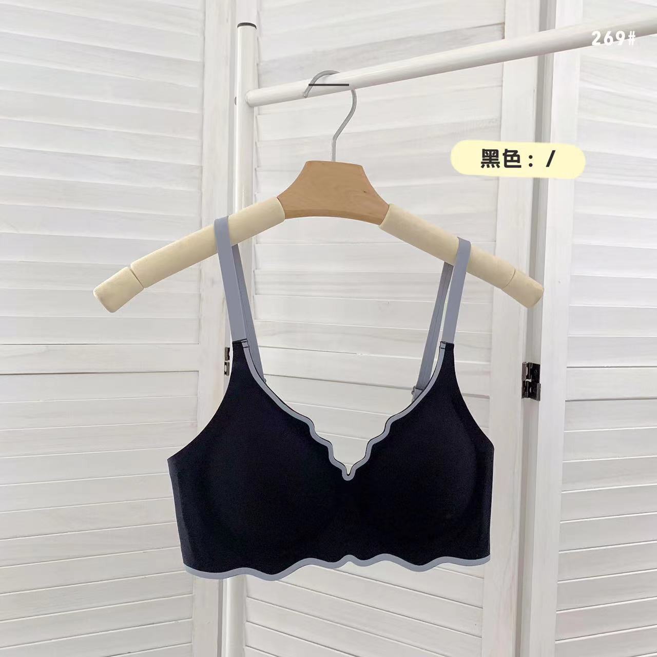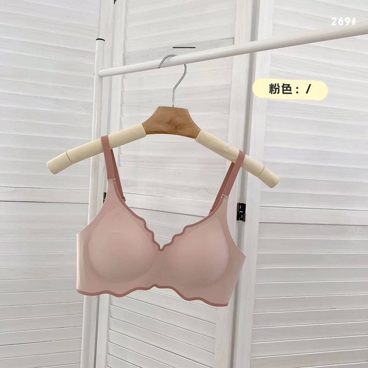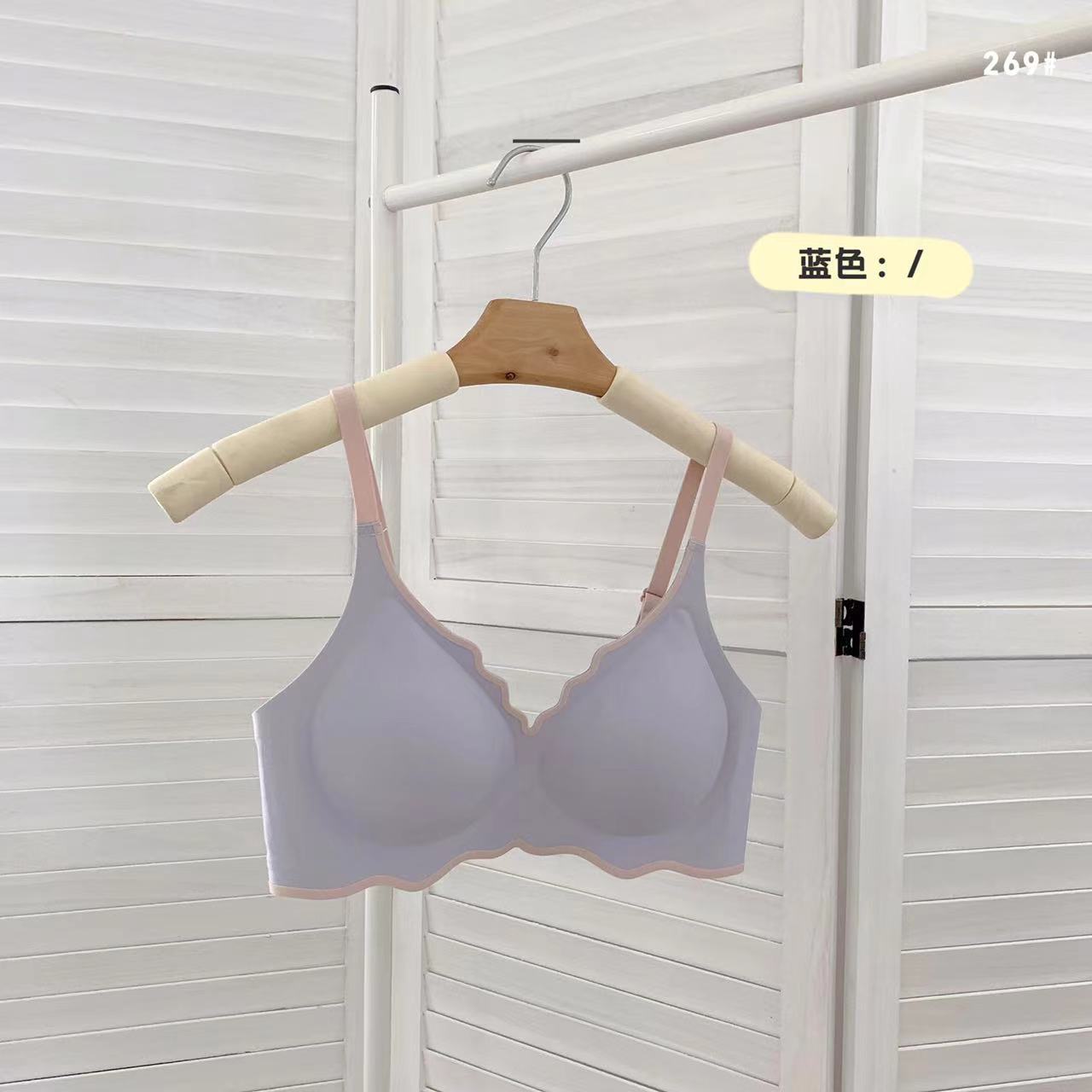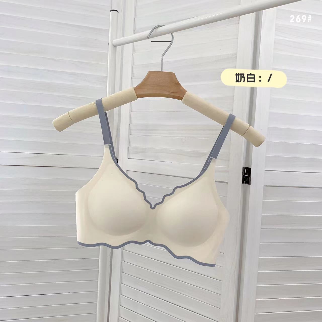 2024无痕撞色果冻软支撑内衣女聚拢防下垂乳胶无钢圈小波浪文胸女