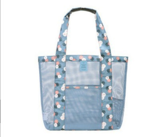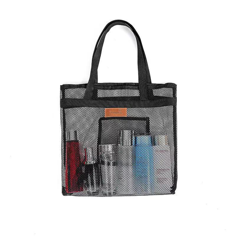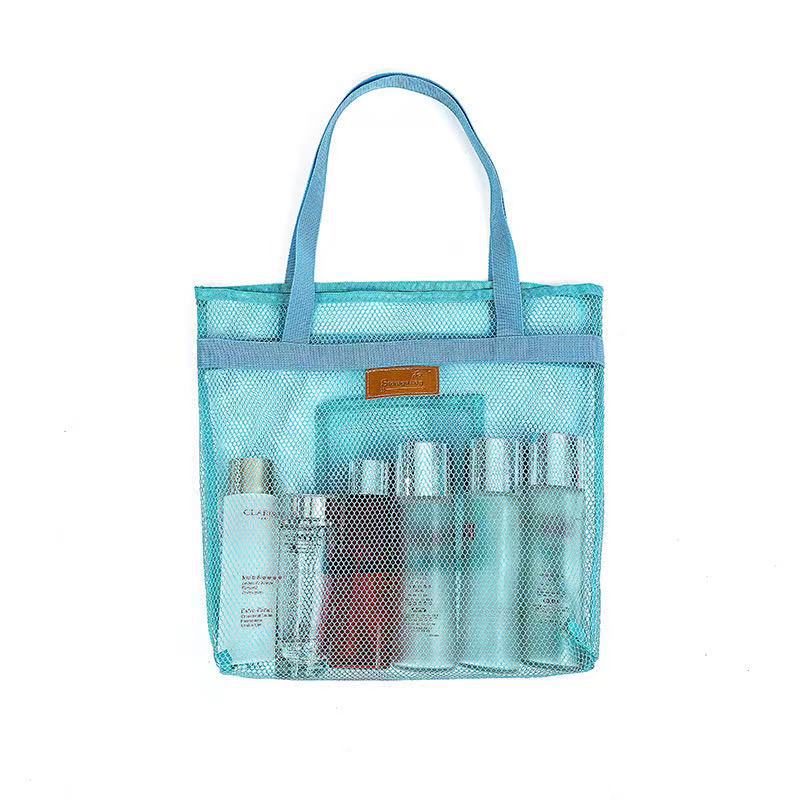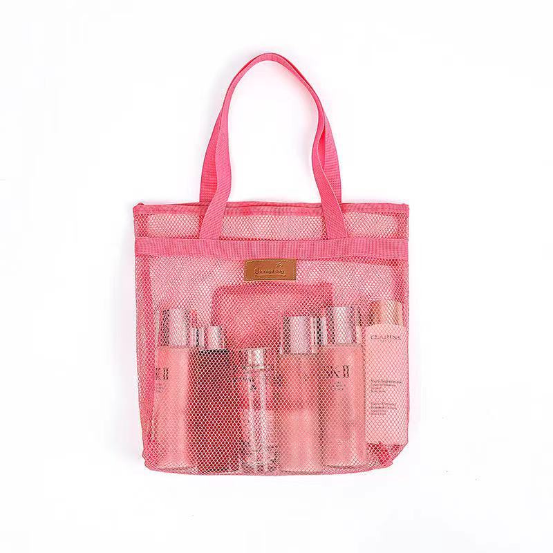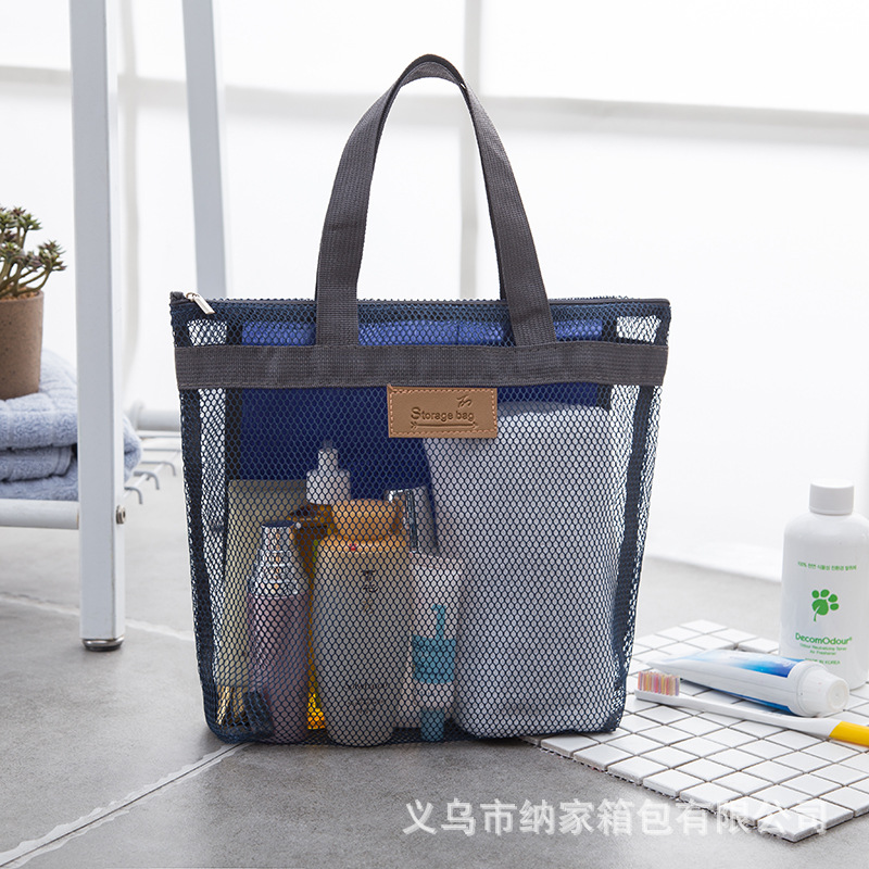 手提网状旅行沙滩袋化妆包折叠洗漱收纳游泳包网格收纳袋洗漱包