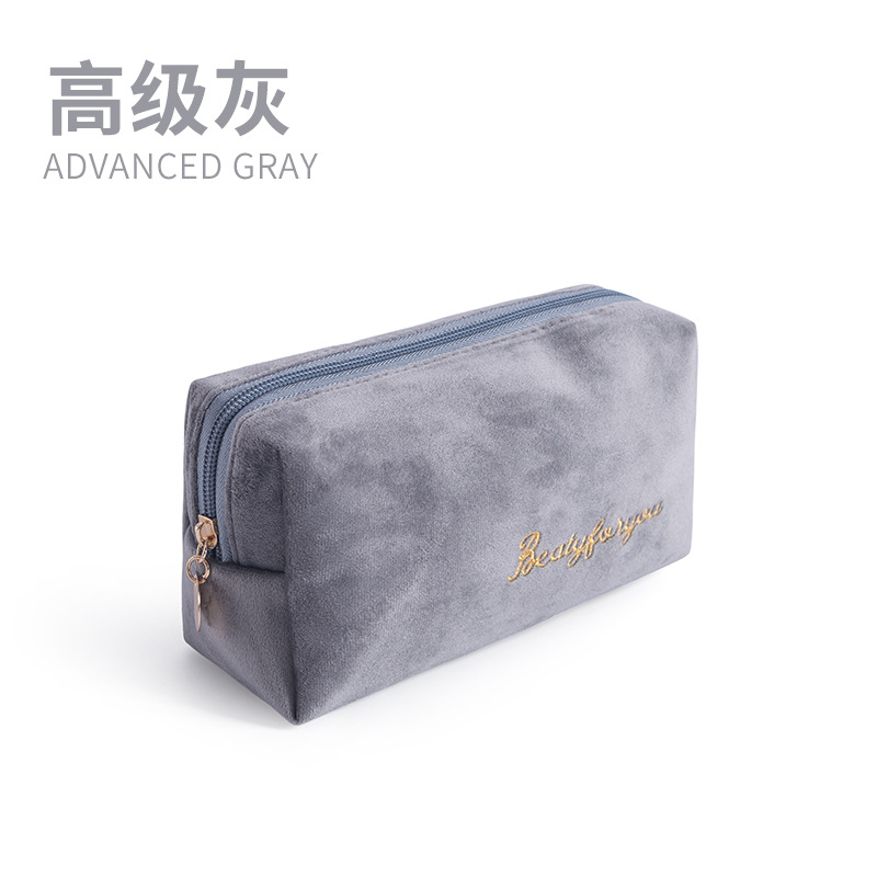 法兰绒化妆收纳包手提绒布女手拿包大容量口红袋北欧风ins四件套