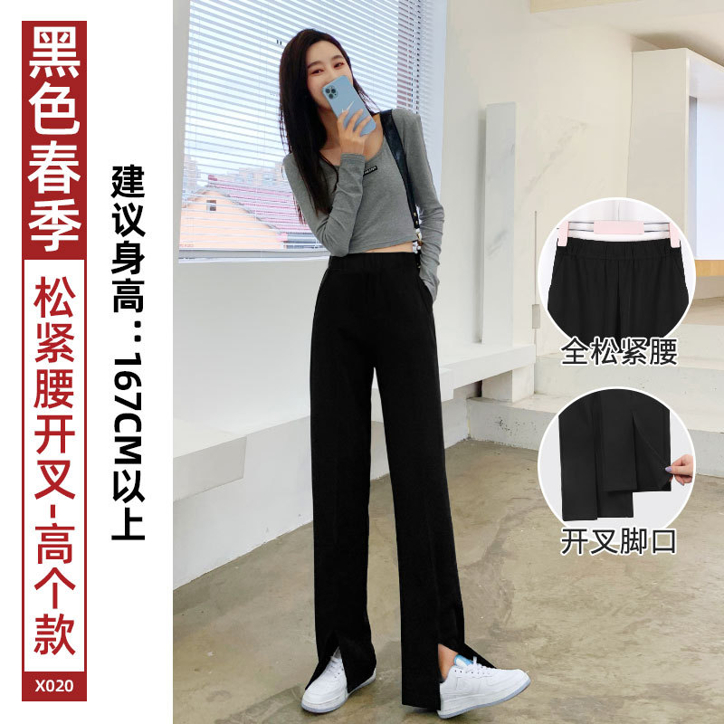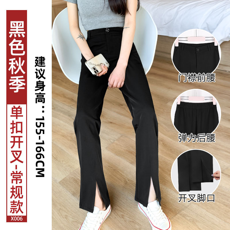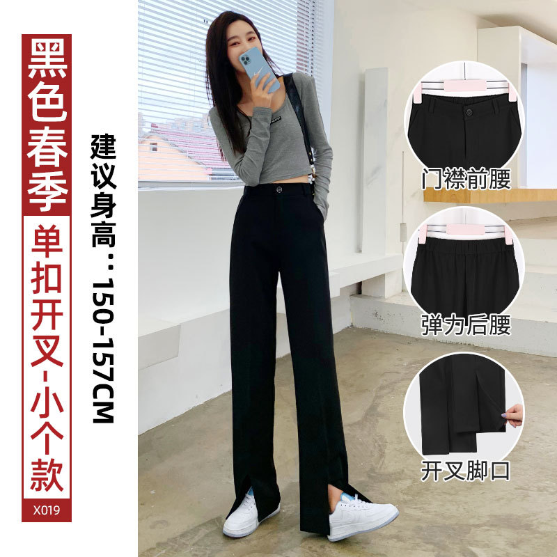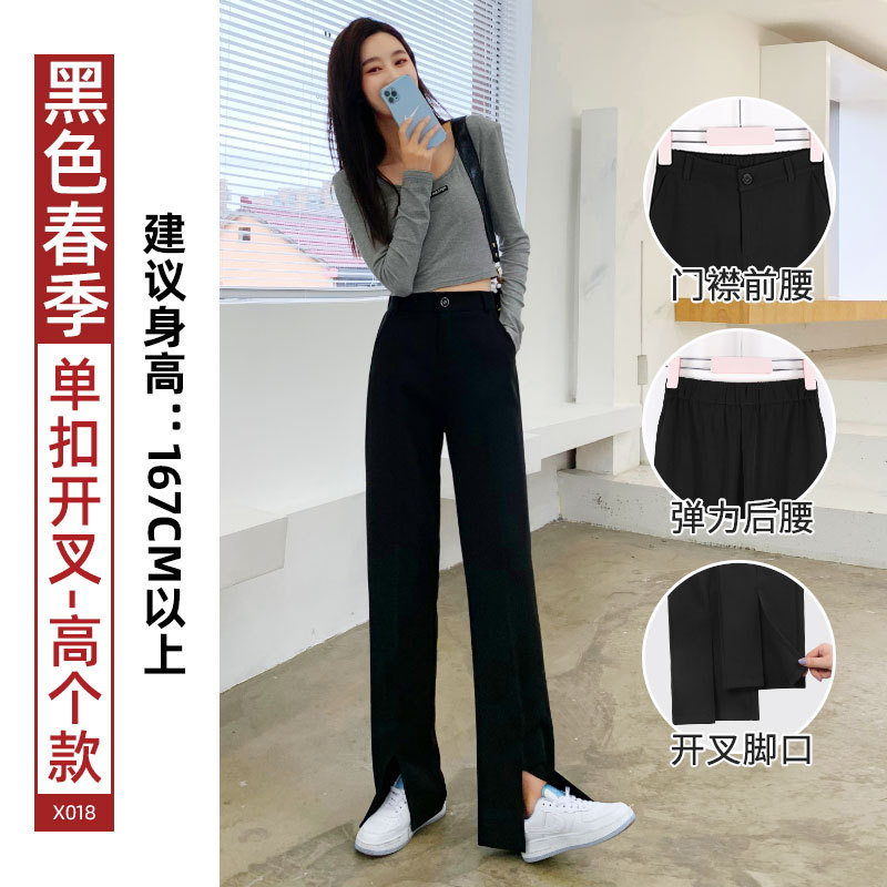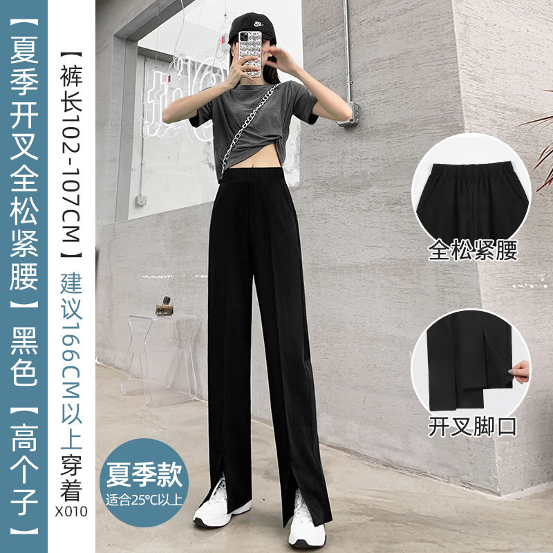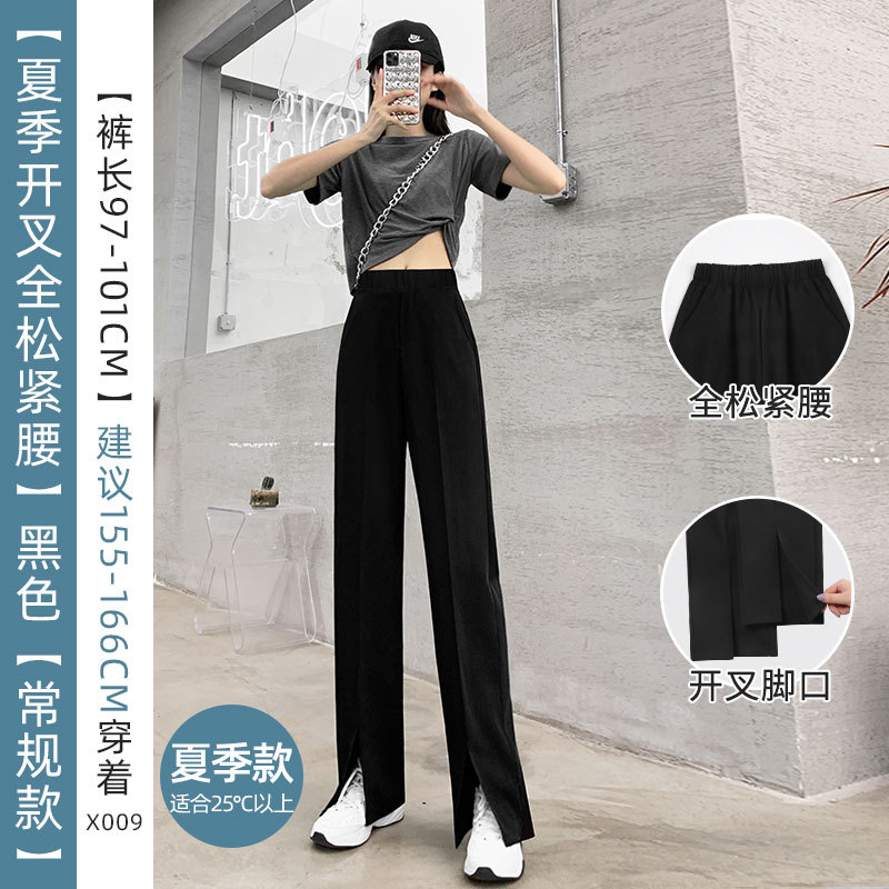 开衩阔腿裤夏季薄款女垂感西装直筒休闲裤子高腰显瘦开叉西装裤女