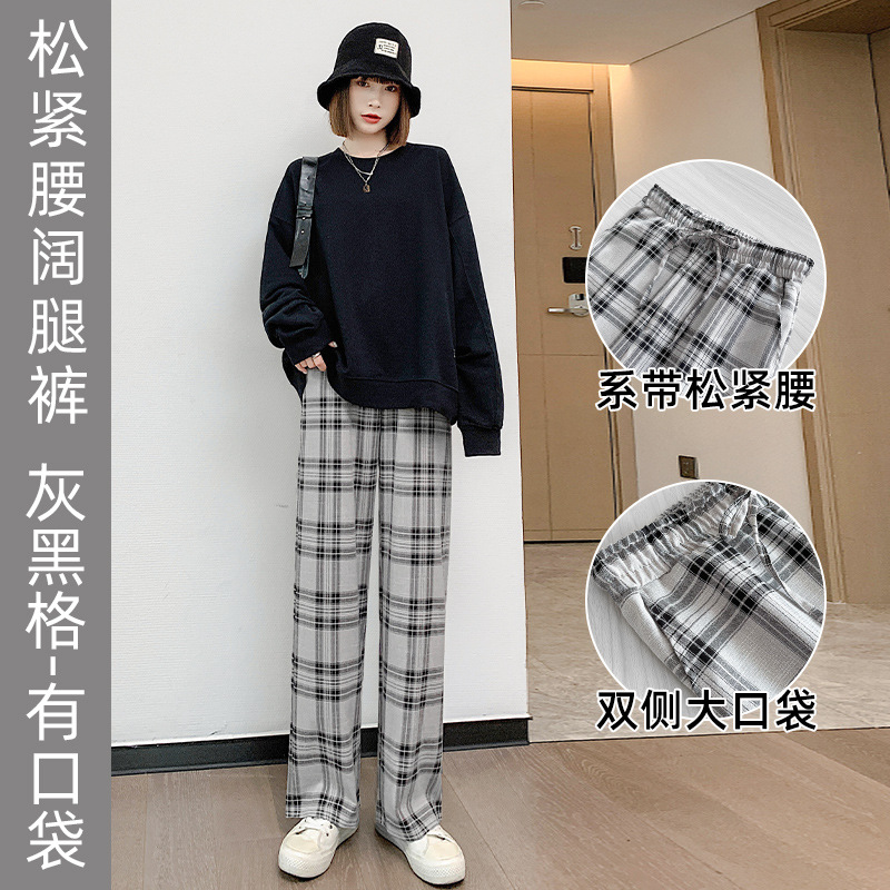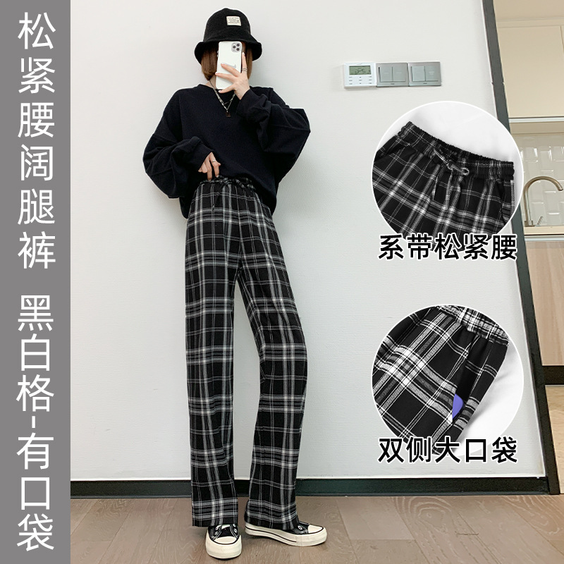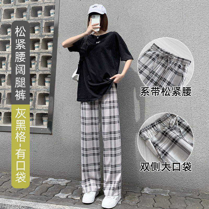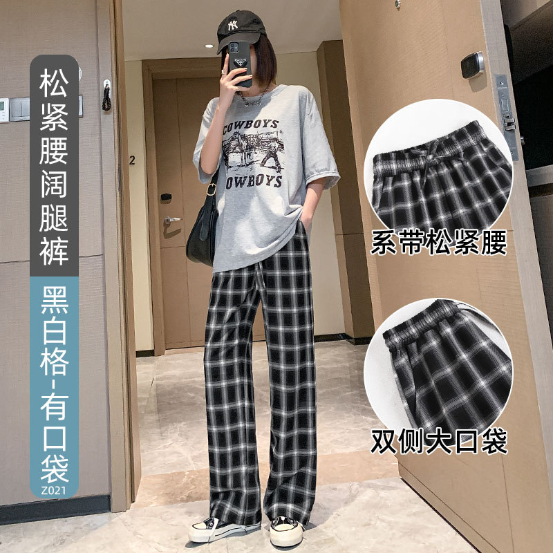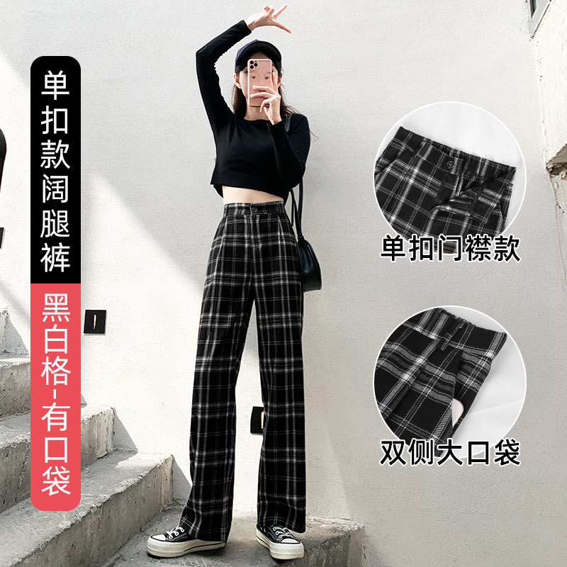 黑白格子裤女士夏季薄款宽直筒松休闲裤百搭2022新款高腰阔腿裤女