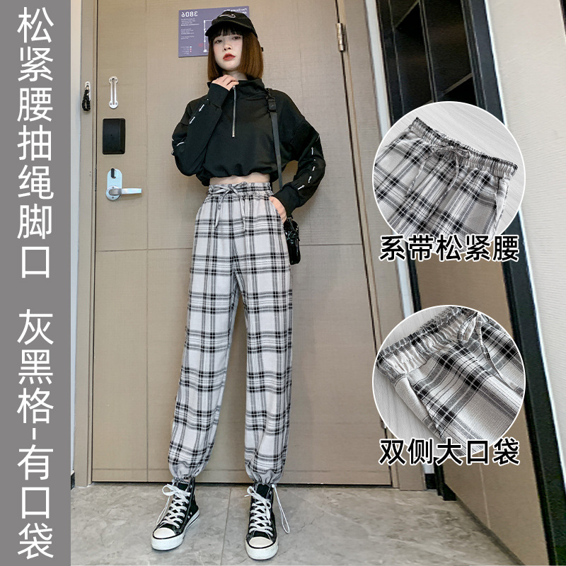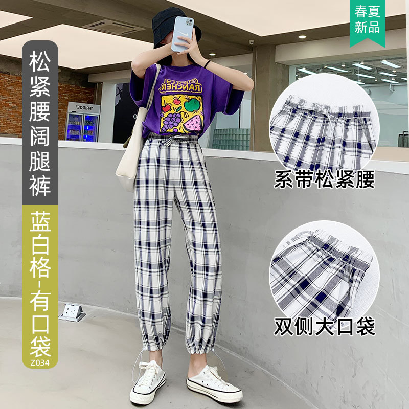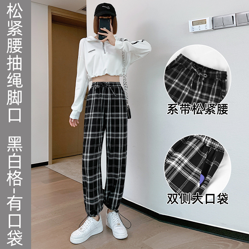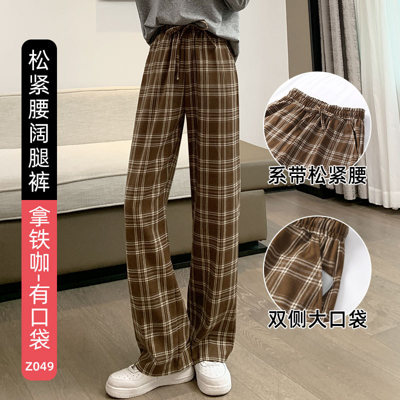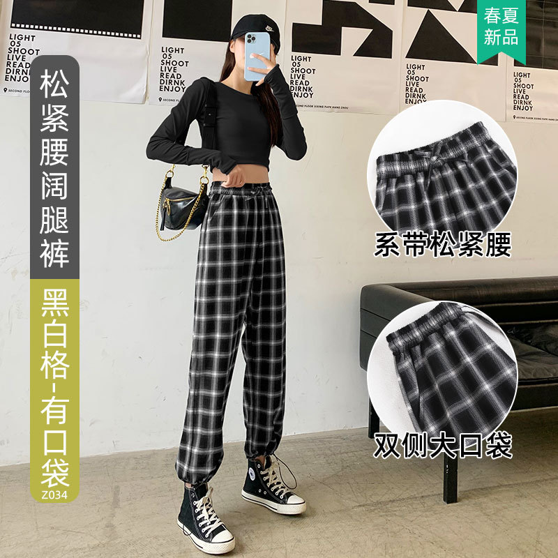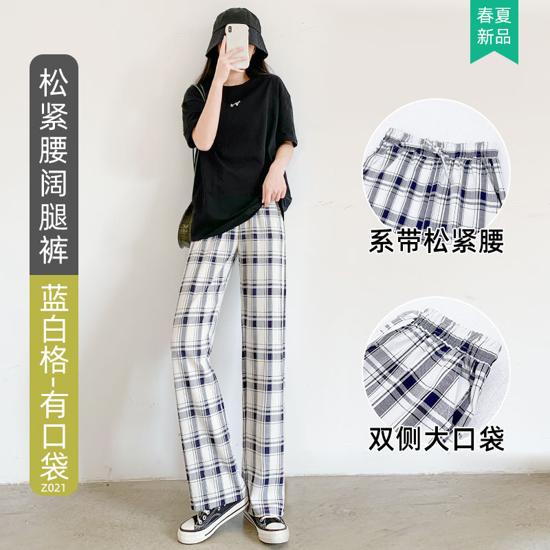黑白格子裤女士夏季薄款宽直筒松休闲裤百搭2022新款高腰阔腿裤女