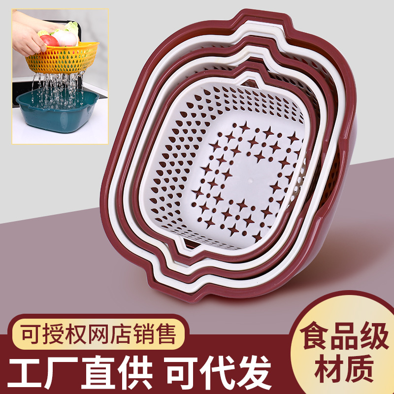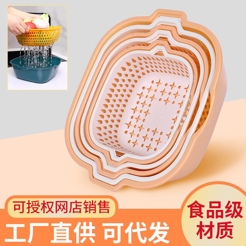 六件套双层塑料沥水篮洗菜篮洗菜盆家用厨房洗菜筐洗水果蓝