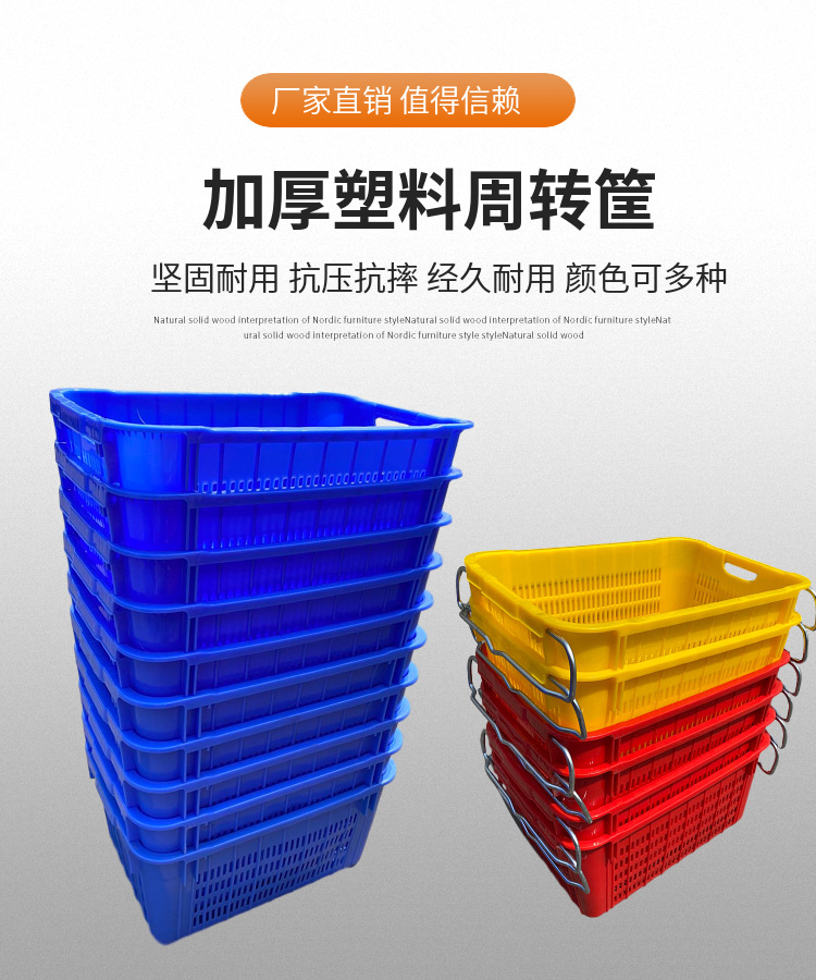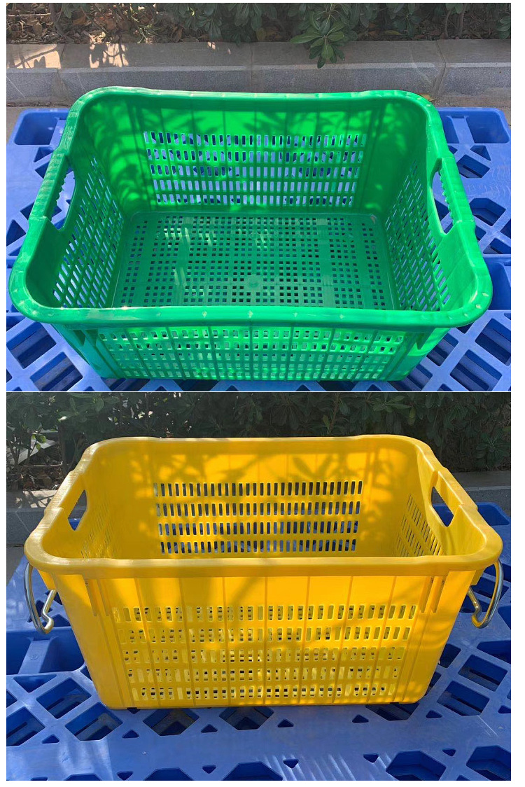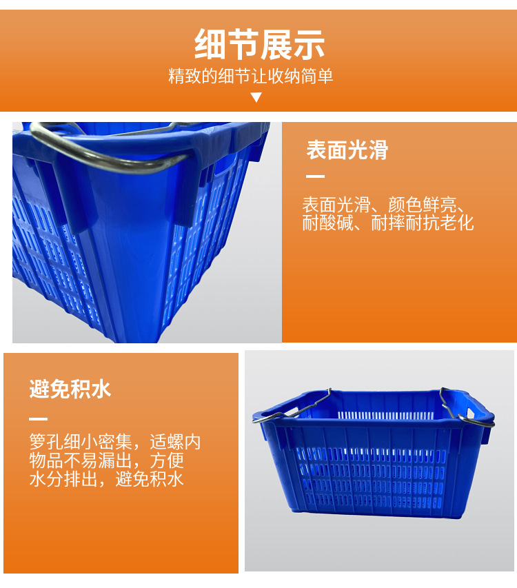 厂家销售周转物流配送菜筐塑料水果筐蓝色新料带耳水果筐支持配送