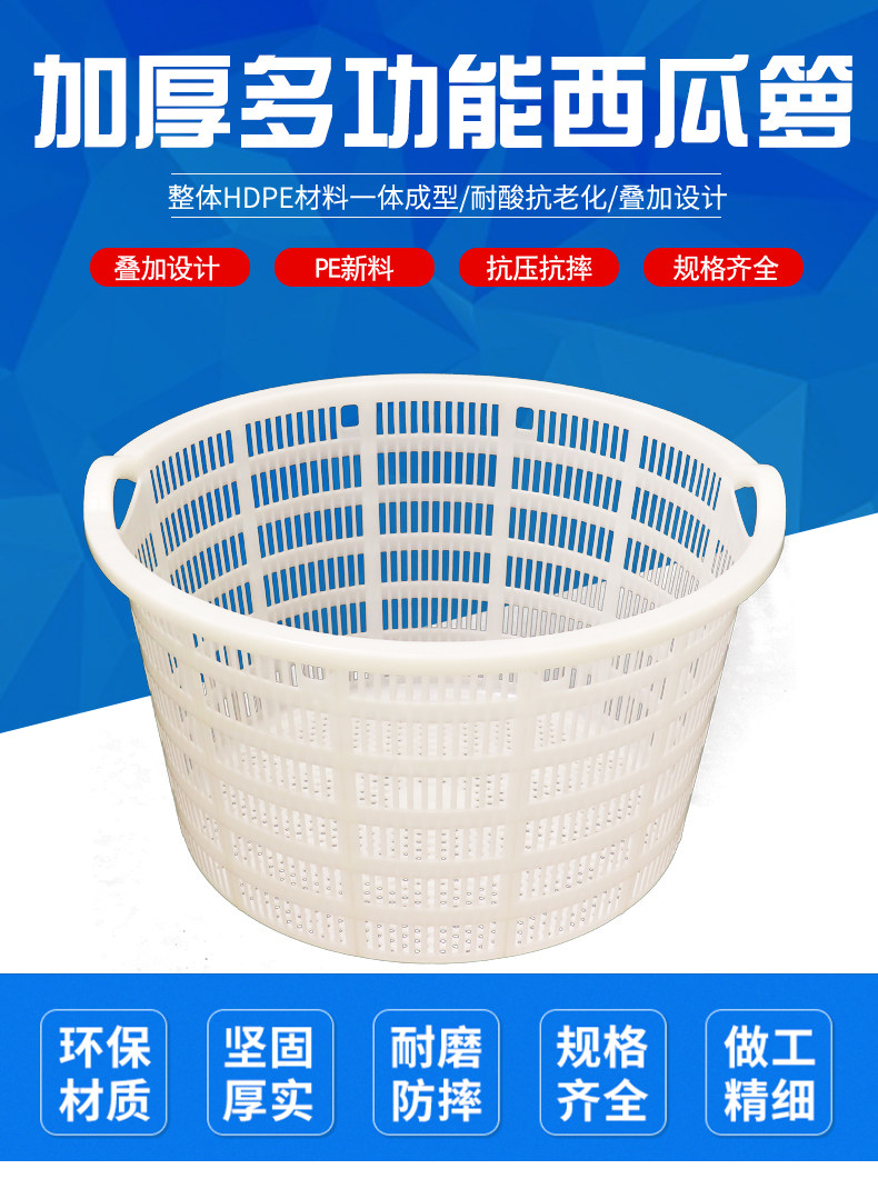 塑料加厚圆形西瓜筐小号装西瓜蔬菜水果筐白色海鲜运输中转周转筐