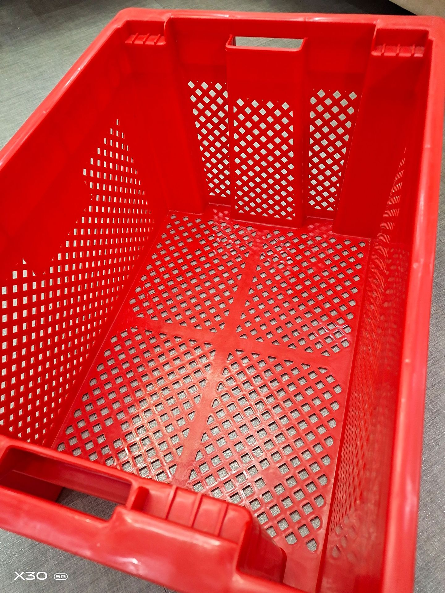 此款货号为620型号的错位式可叠加周转筐,共有三个款,现货颜色有红色/蓝色/白色/黄色/绿色,全新原料,结实耐用抗摔.