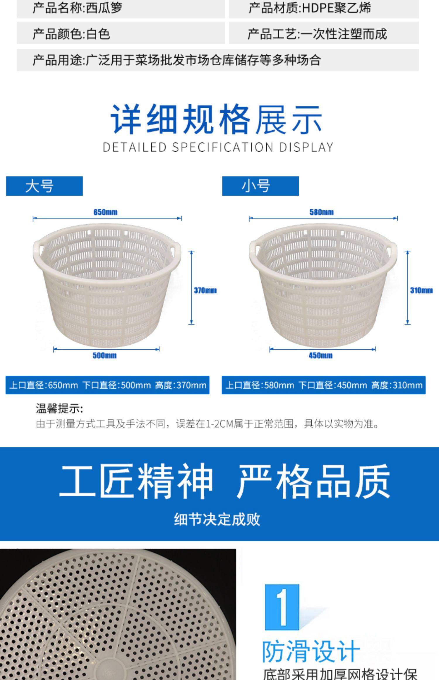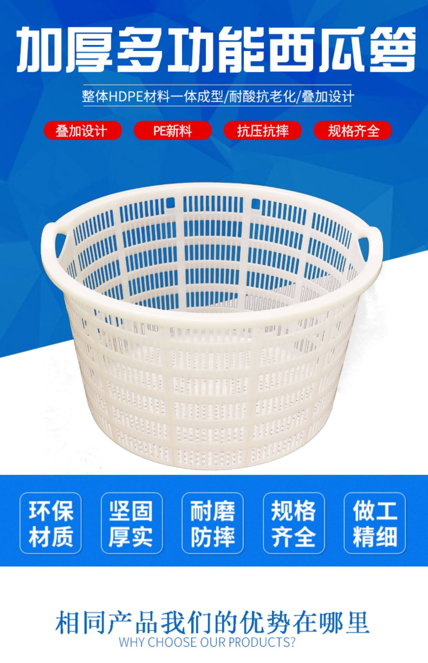 塑料加厚圆形西瓜筐小号装西瓜蔬菜水果筐白色海鲜运输中转周转筐