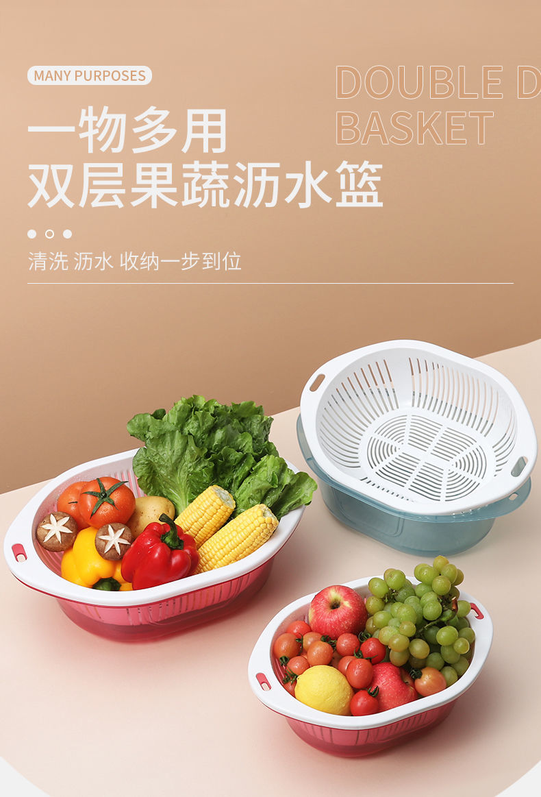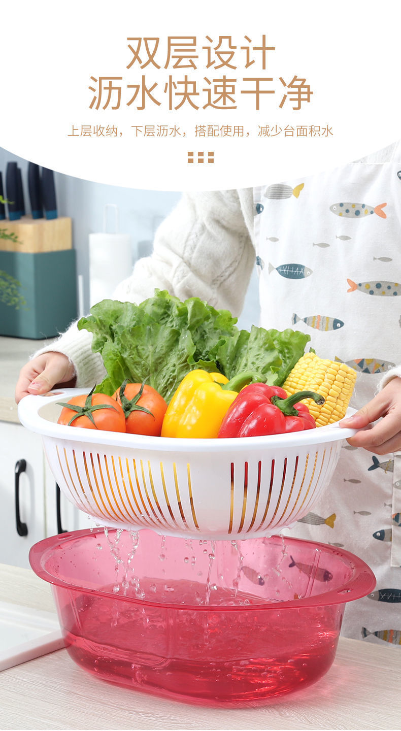 大号双层沥水篮家用网红水果盘厨房洗菜盆火锅店淘菜筐收纳菜篮子