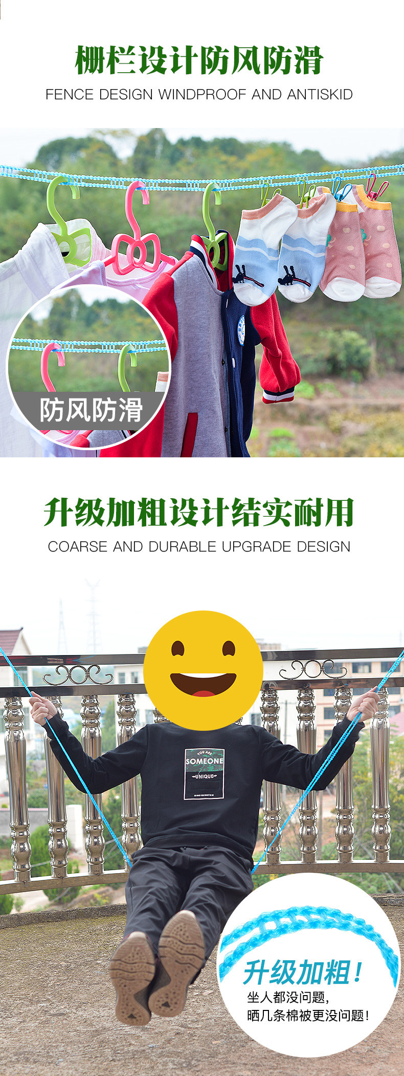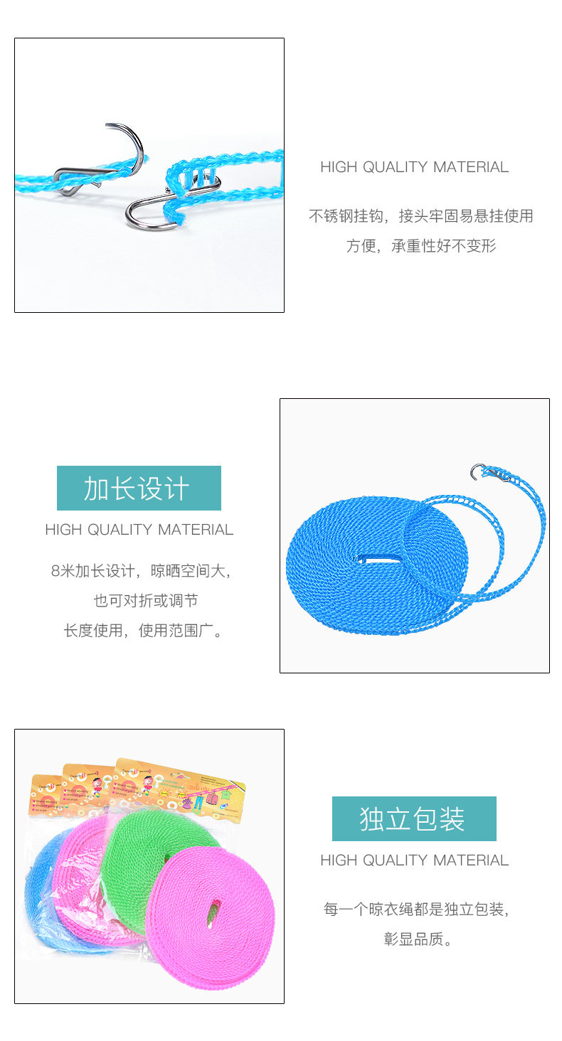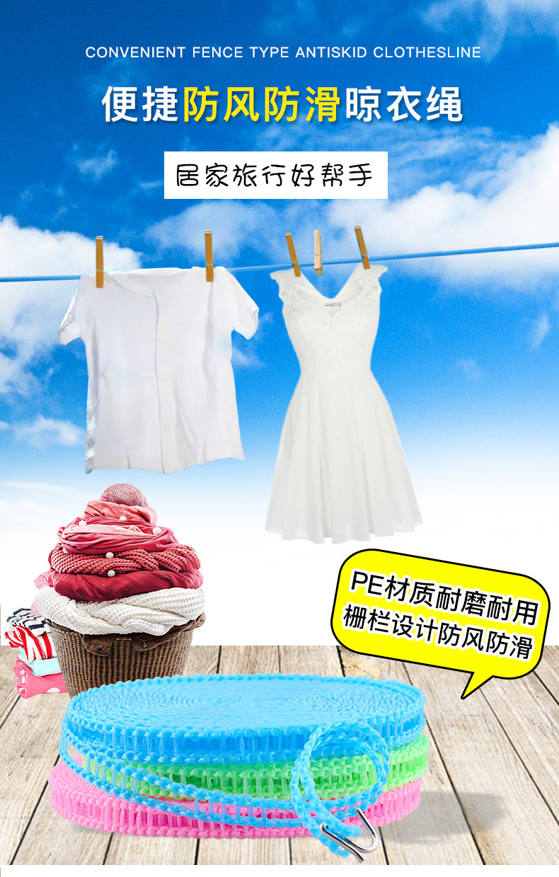 加粗晾衣绳室内户外旅行免打孔防风防滑凉挂晒衣服绳子被子批发