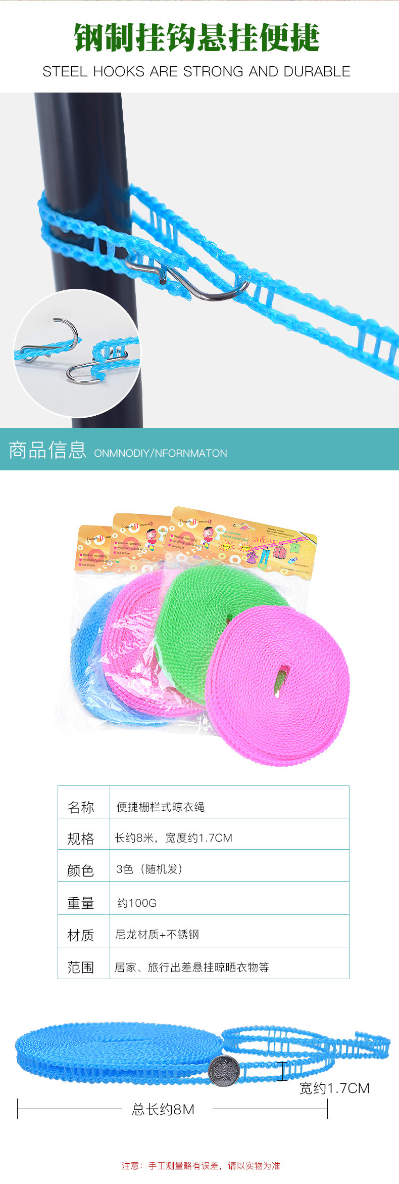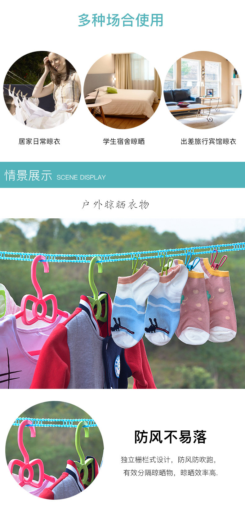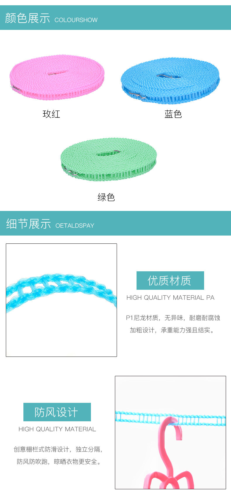 加粗晾衣绳室内户外旅行免打孔防风防滑凉挂晒衣服绳子被子批发