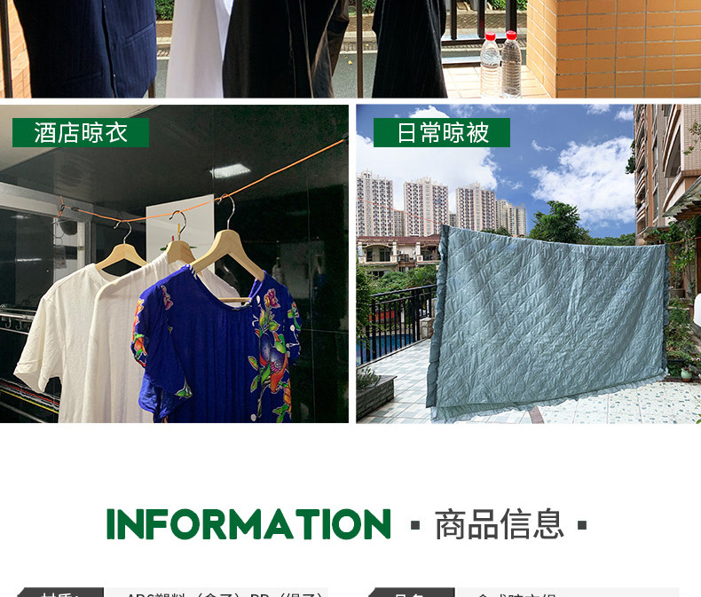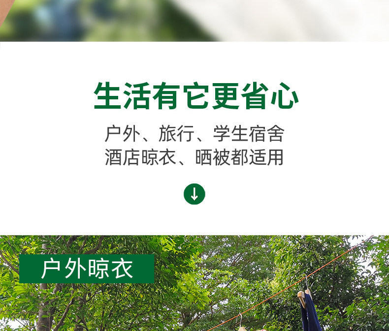 户外晾衣绳旅游便携防风防滑免打孔凉挂晒衣服绳子室外晒被子加粗
