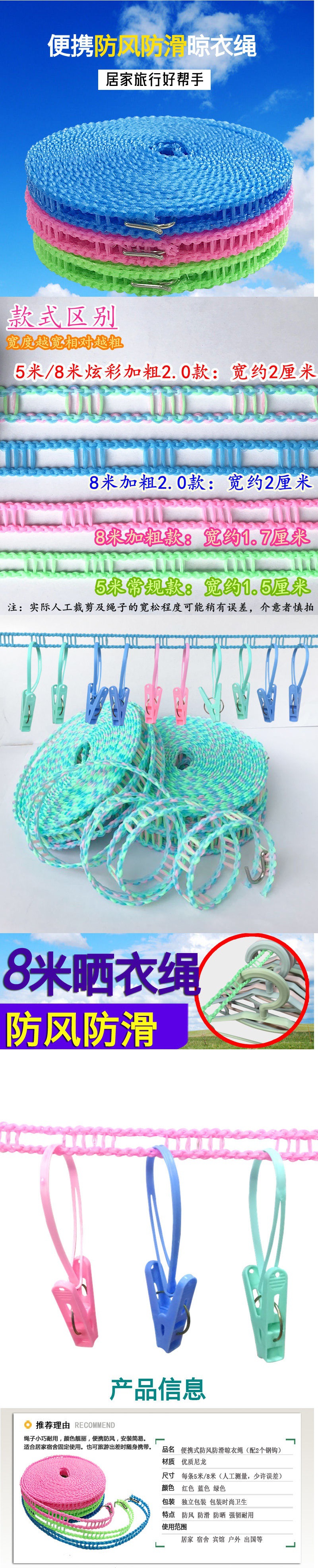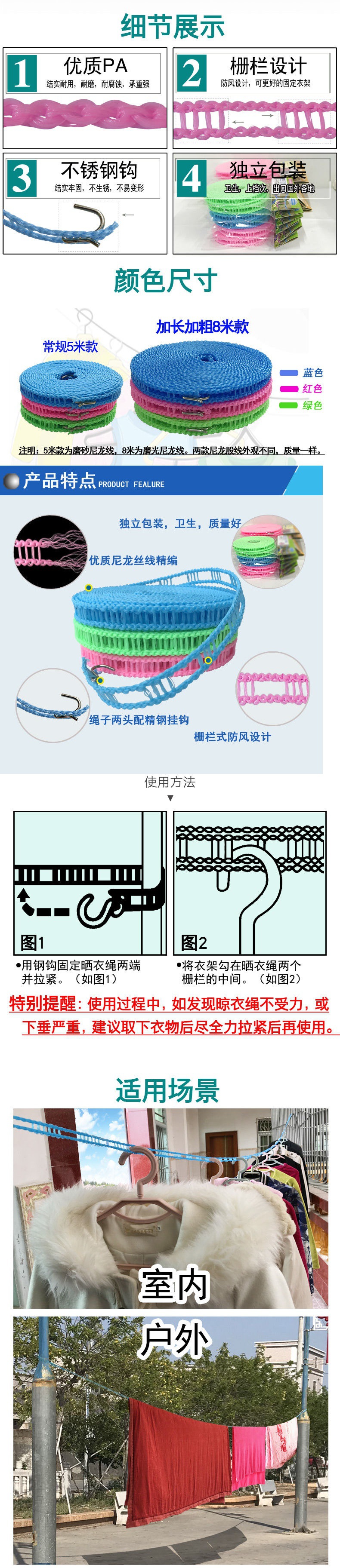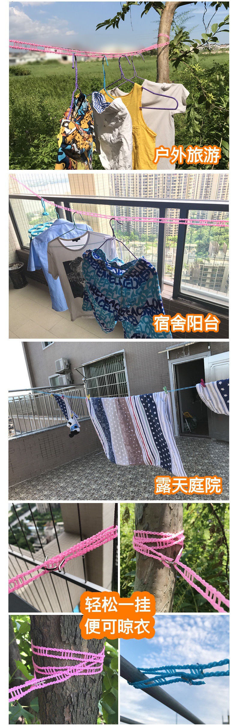 伸缩晾衣绳8米加粗挂衣绳防滑防风晒衣绳晒被绳子阳台旅行亚马逊