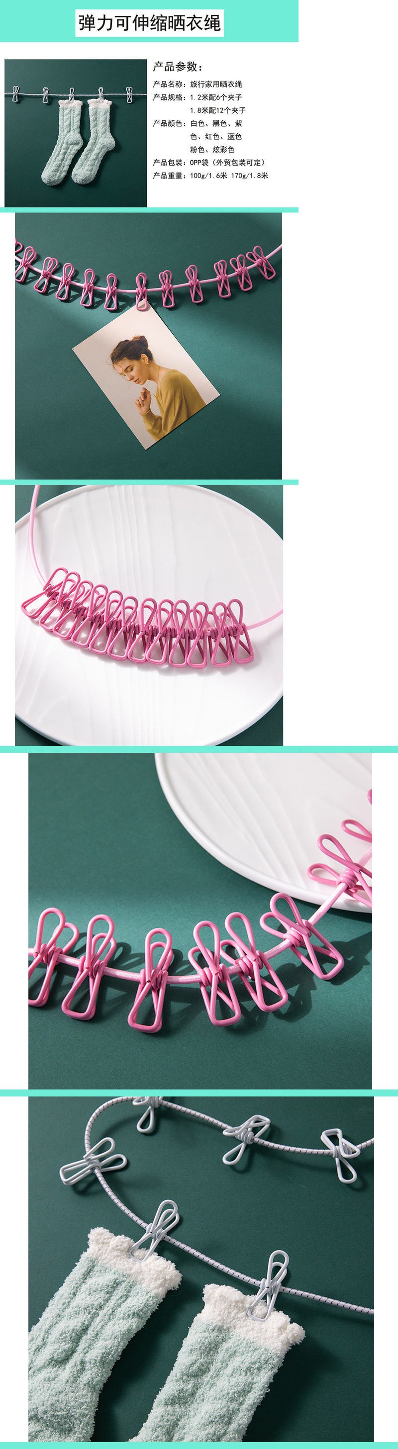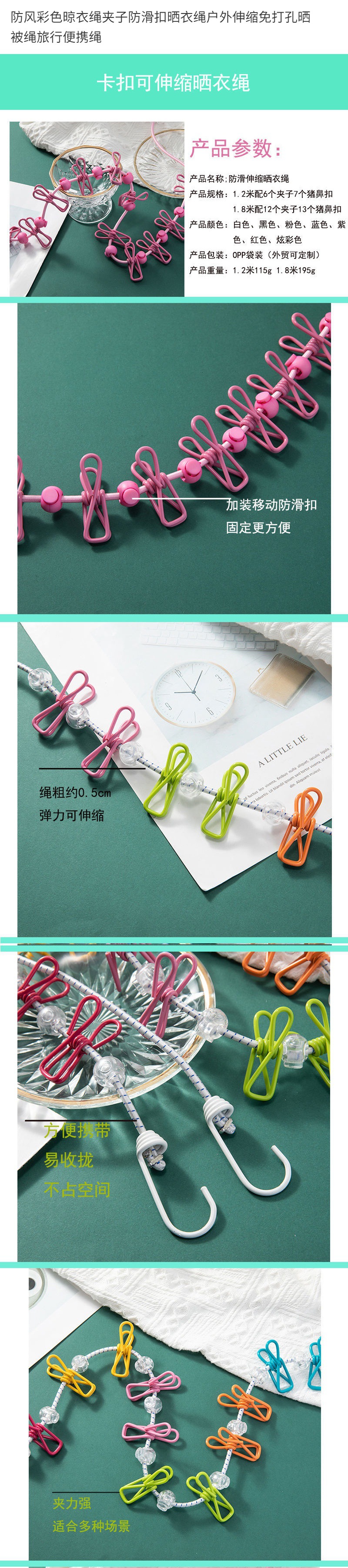 伸缩晾衣绳防风彩色宿舍防滑扣晒衣绳免打孔晒被绳旅行便携绳批发