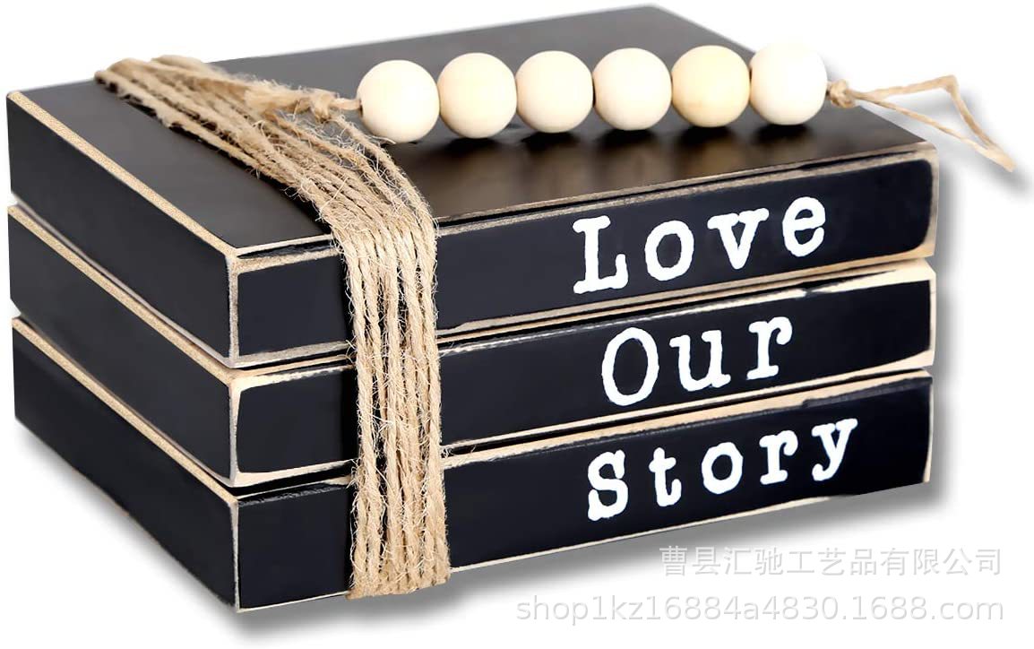 【月销3000】木质假书摆件木质装饰书捆绑仿真书 书房室内摆件