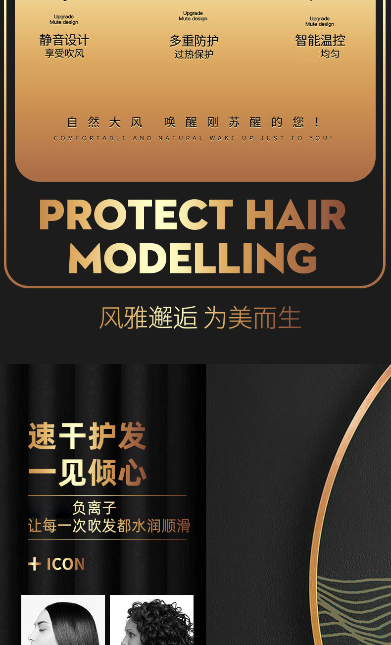 吹风机大功率家用网红锤子理发店学生宿舍负离子电吹风筒一件代发