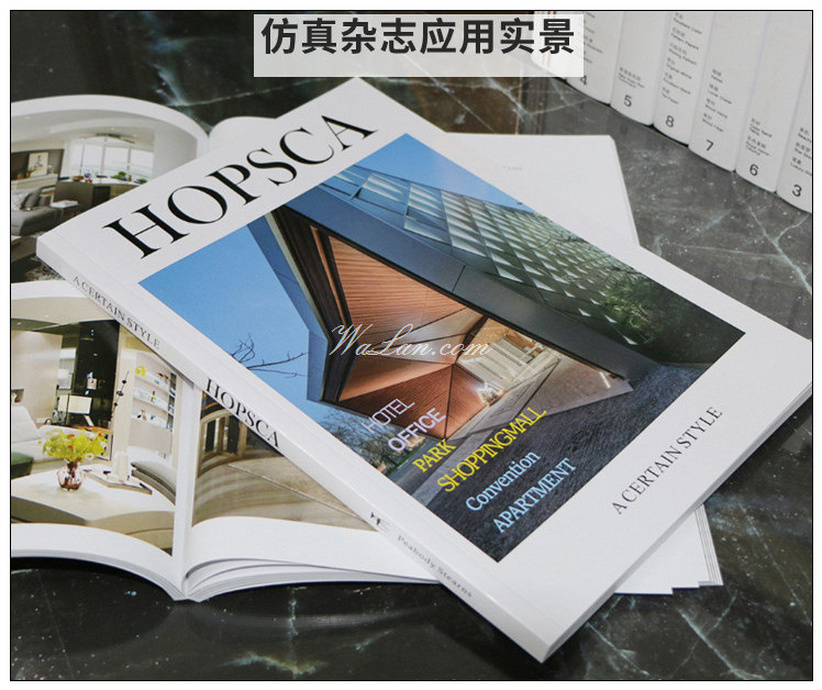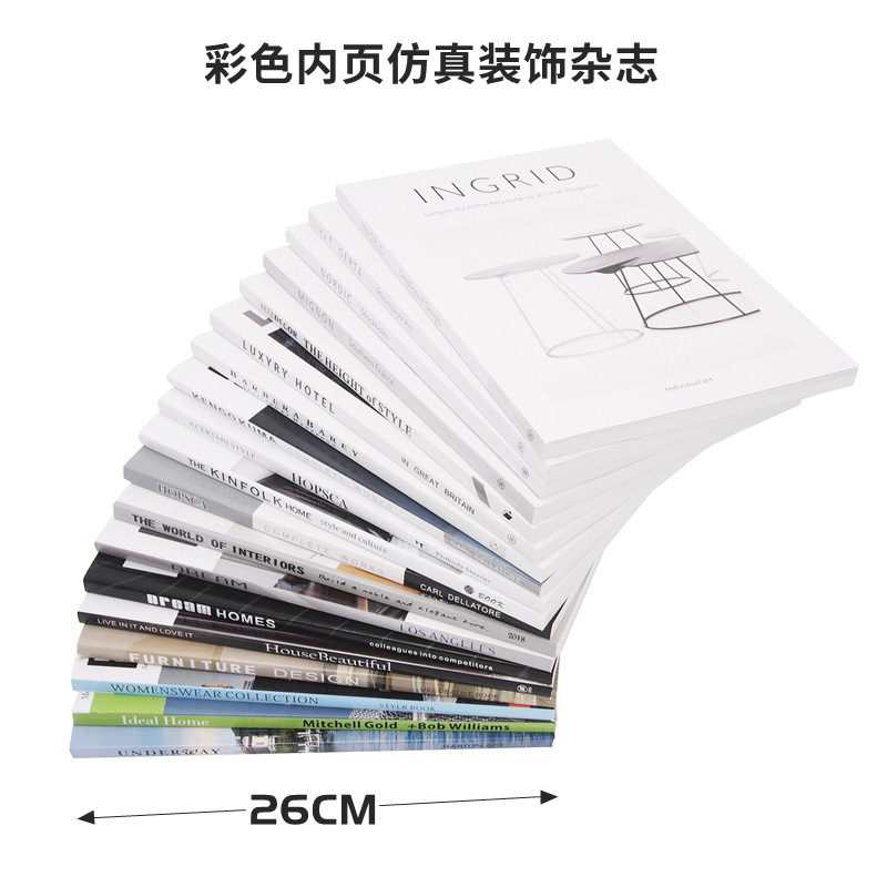 英文仿真装饰杂志 简约现代假书 可翻页仿真书 样板房真书摆件