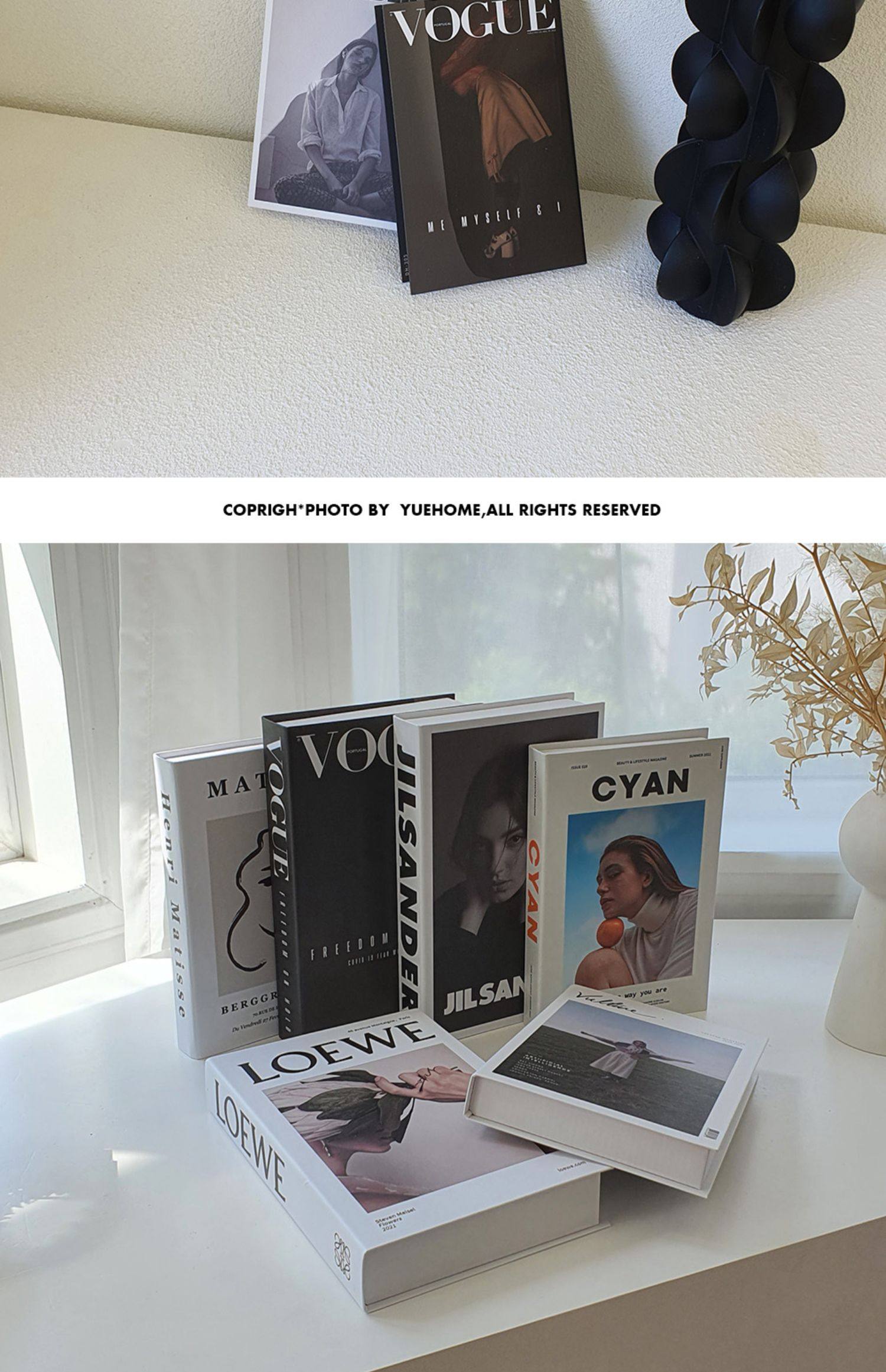英文装饰书摆件时尚风仿真书摄影道具民宿工作室软装假书杂志