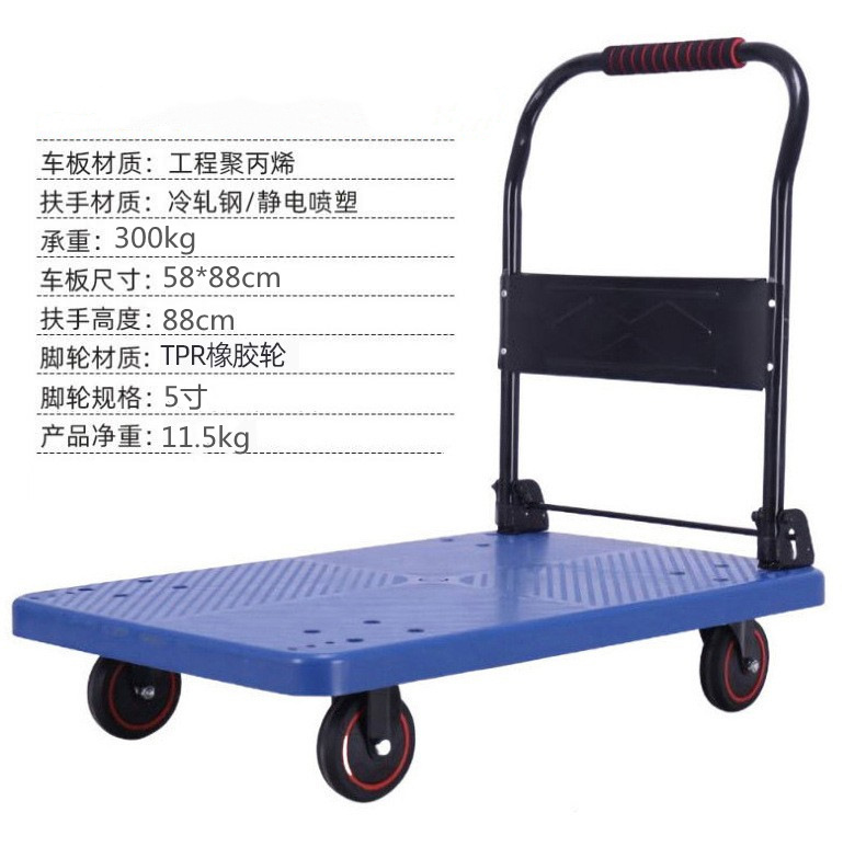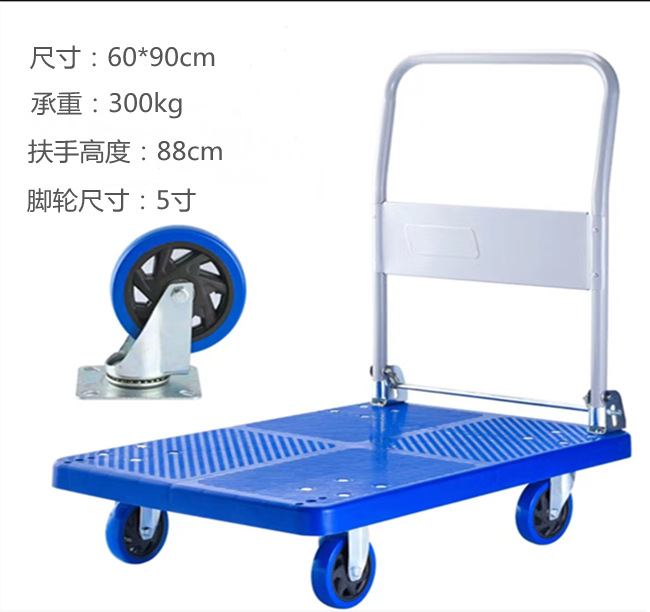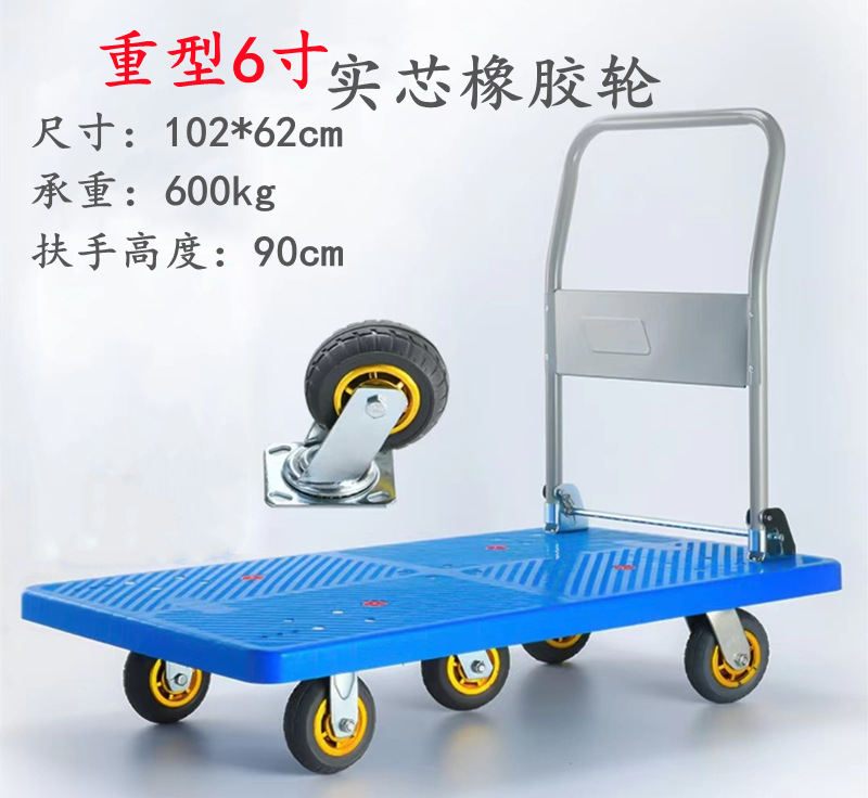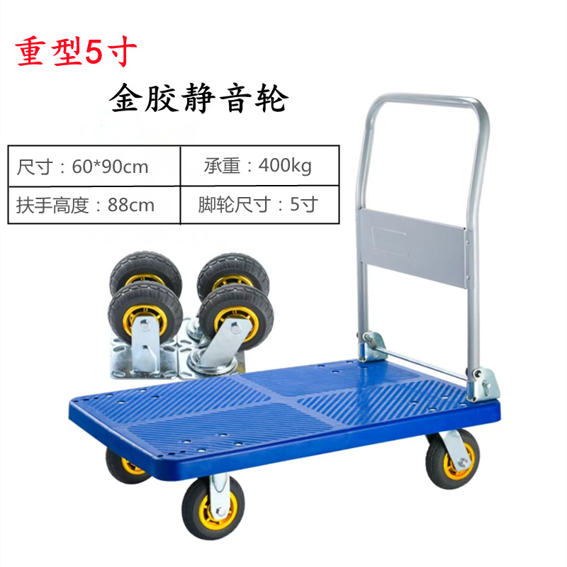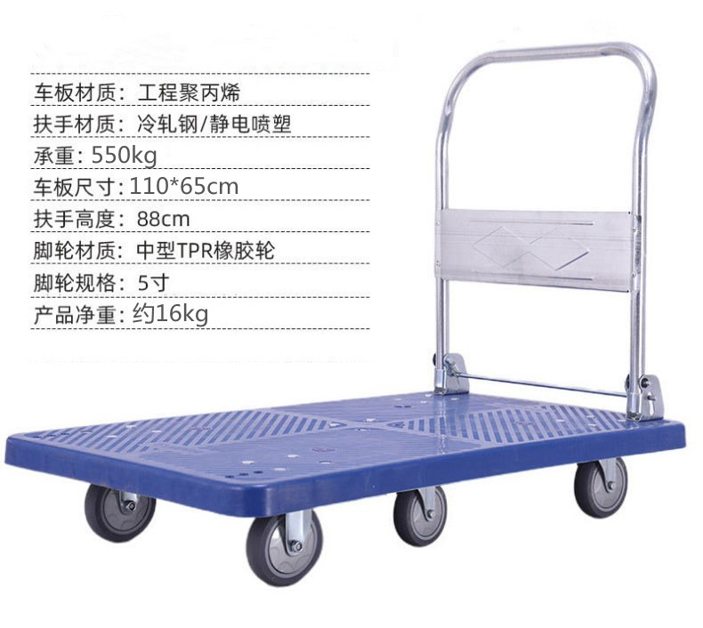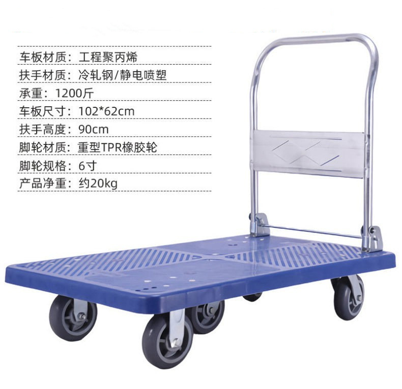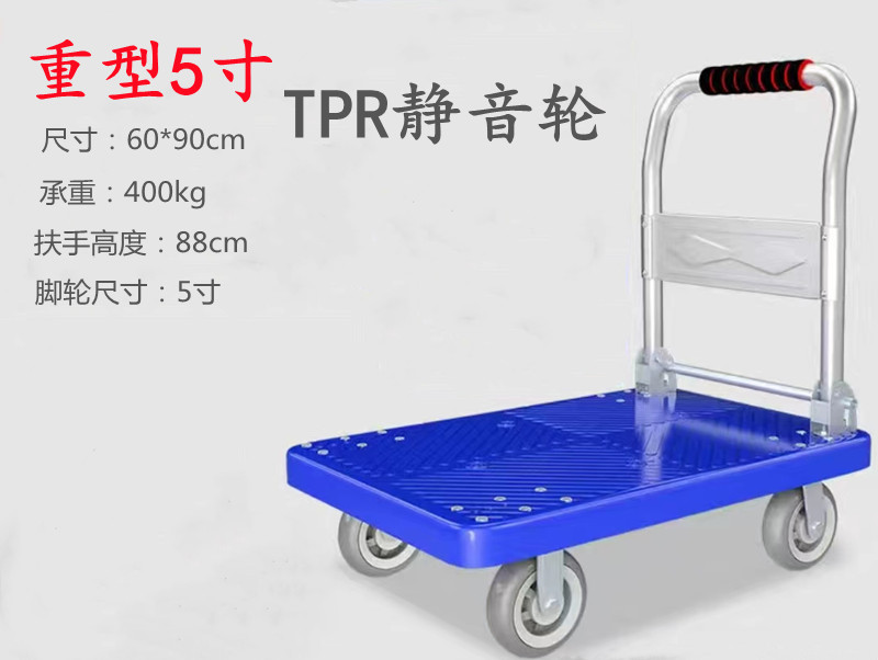 现货静音小推车平板折叠手推车工程聚丙烯拖车超市拉货工具车批发