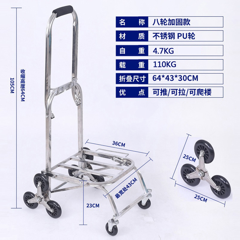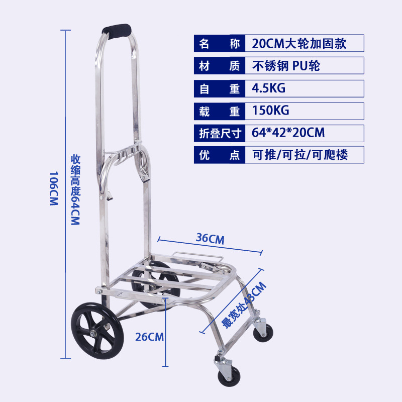大号高档不锈钢折叠便携 行李车 购物车 手拉车 拖车 载重王静音