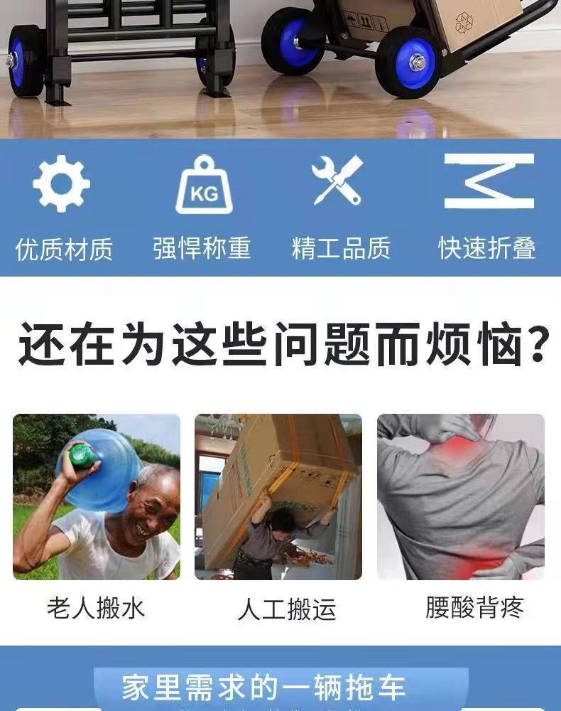小推车家用折叠便携行李车手拉车购物车买菜车拉货车载重王小拉车