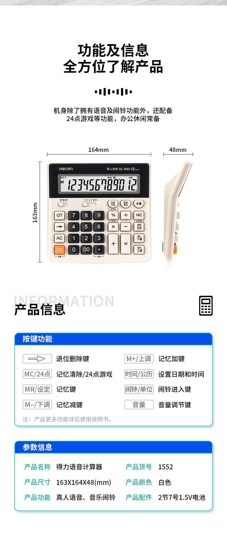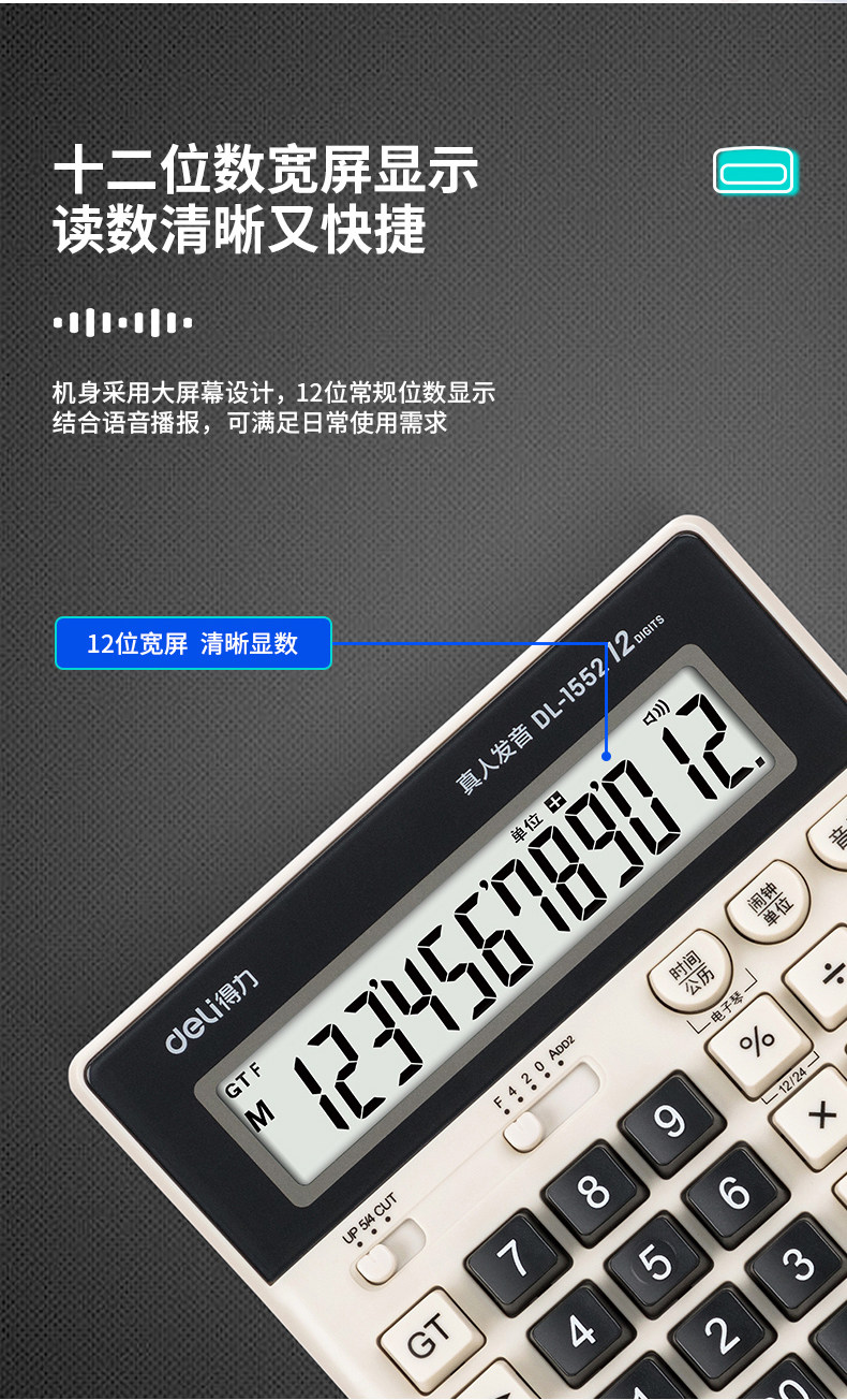 得力计算器语音款办公会计专用大号太阳能有声音商用多功能批发