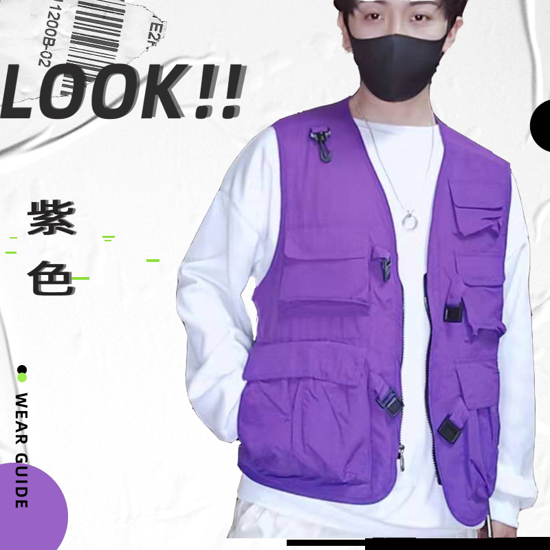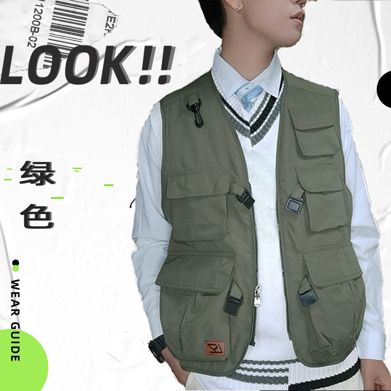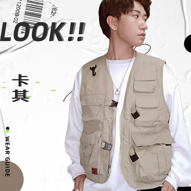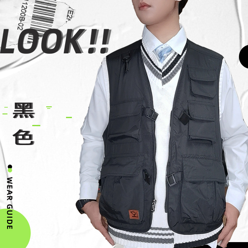 批发多口袋机能工装马甲男式户外摄影钓鱼志愿者马夹坎肩背心印字