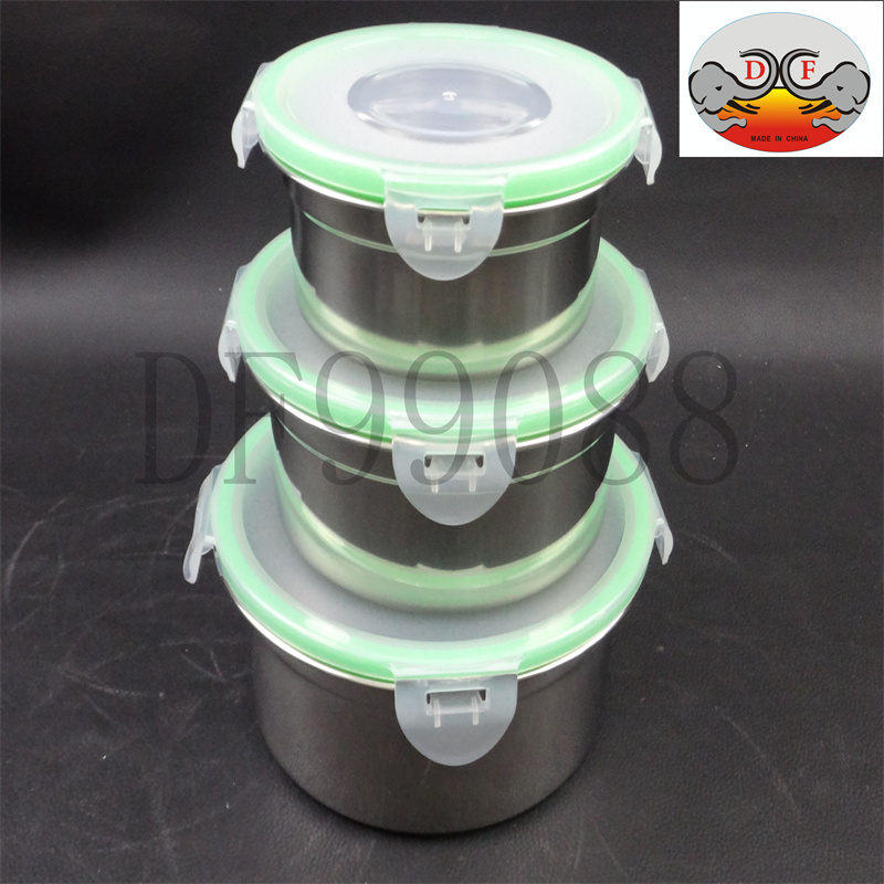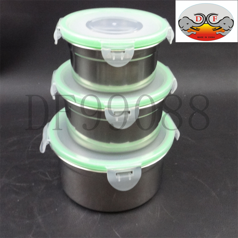 DF99088 不锈钢三件套保温盒食格保鲜盒欧式双层便携保温盒厨房