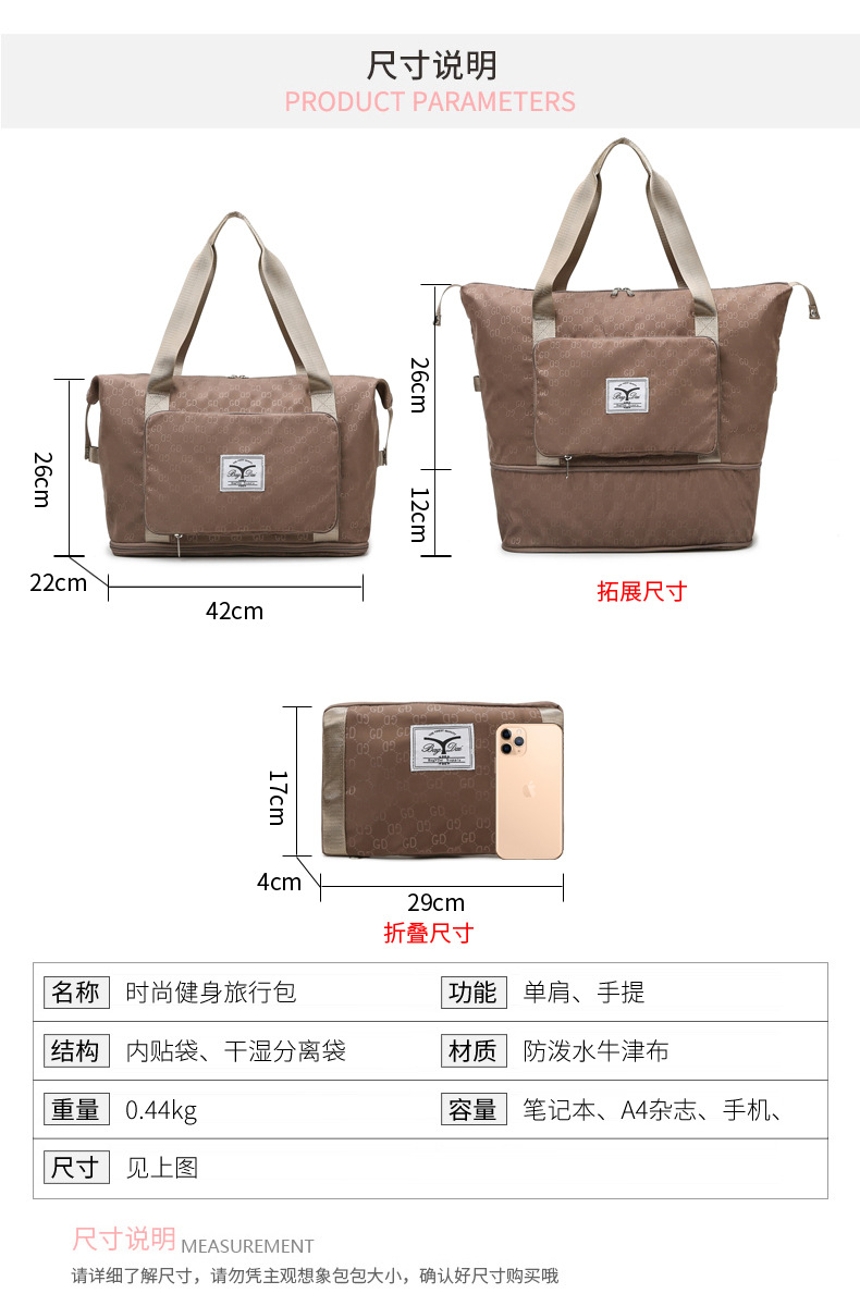 旅行包女大容量外出轻便手提行李袋收纳折叠搬家包干湿分离健身包
