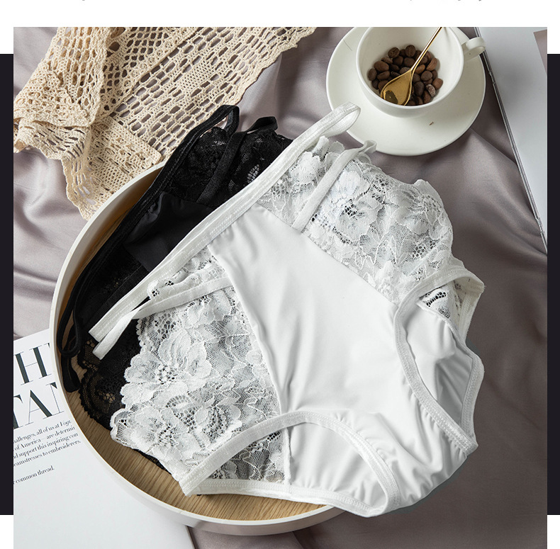 欧美性感女士情趣白色性感内裤 女式高腰蕾丝内裤镂空三角裤大码