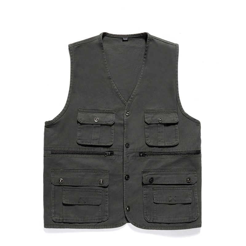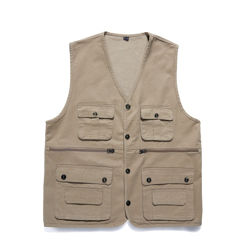 春秋装马夹男士户外坎肩摄影钓鱼纯棉多口袋中老年男背心工装马甲