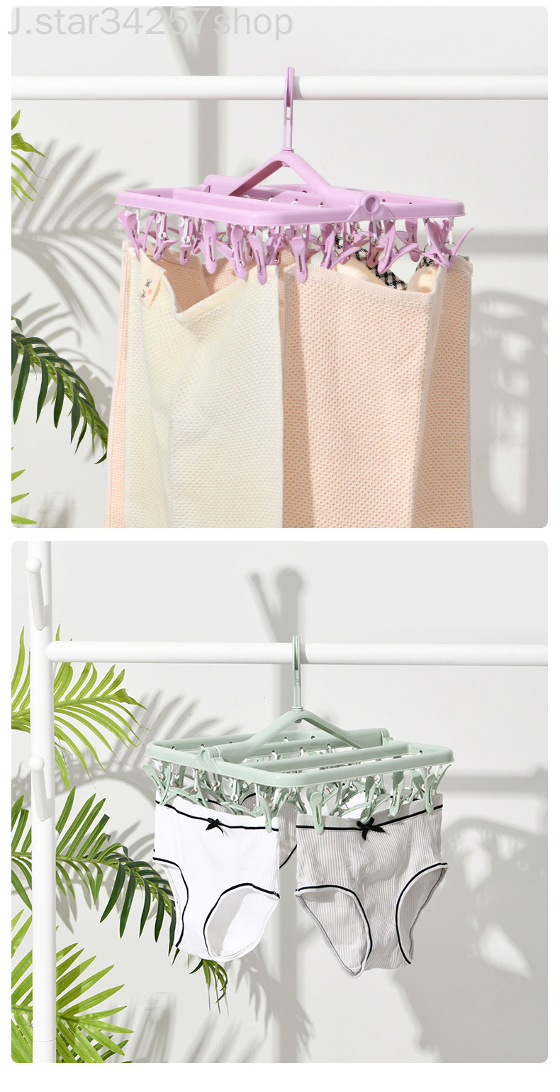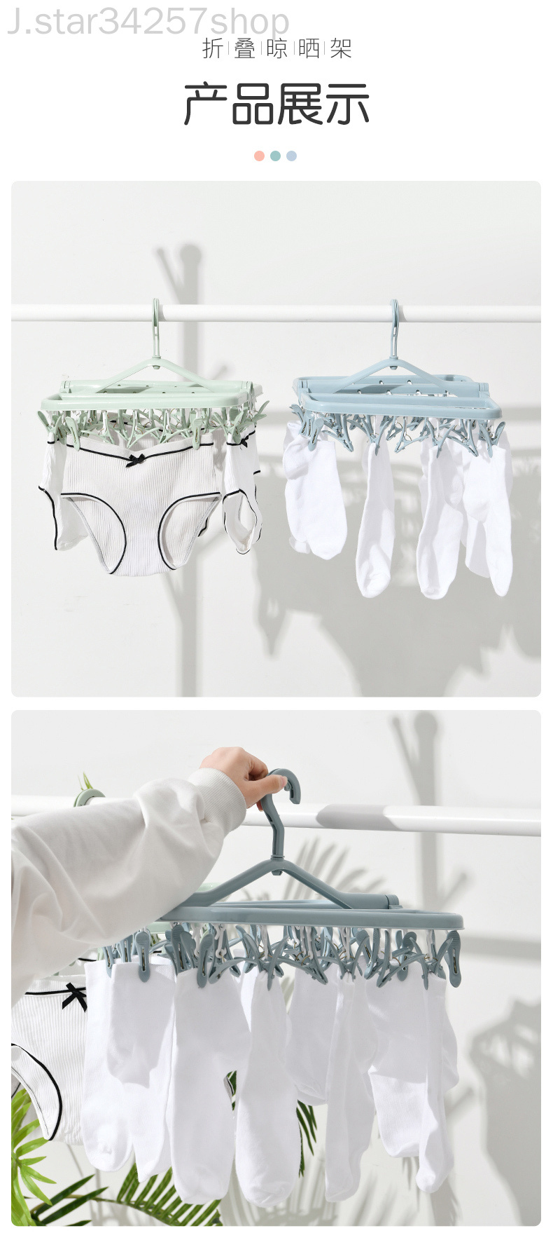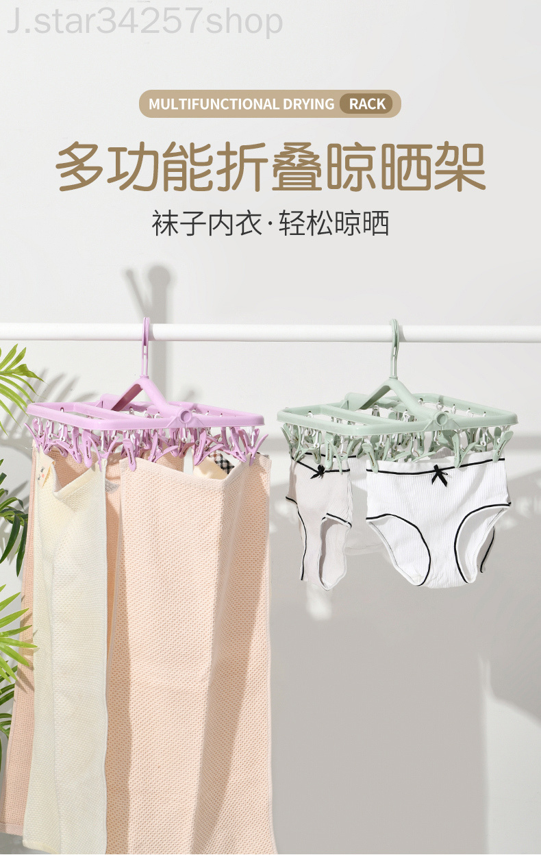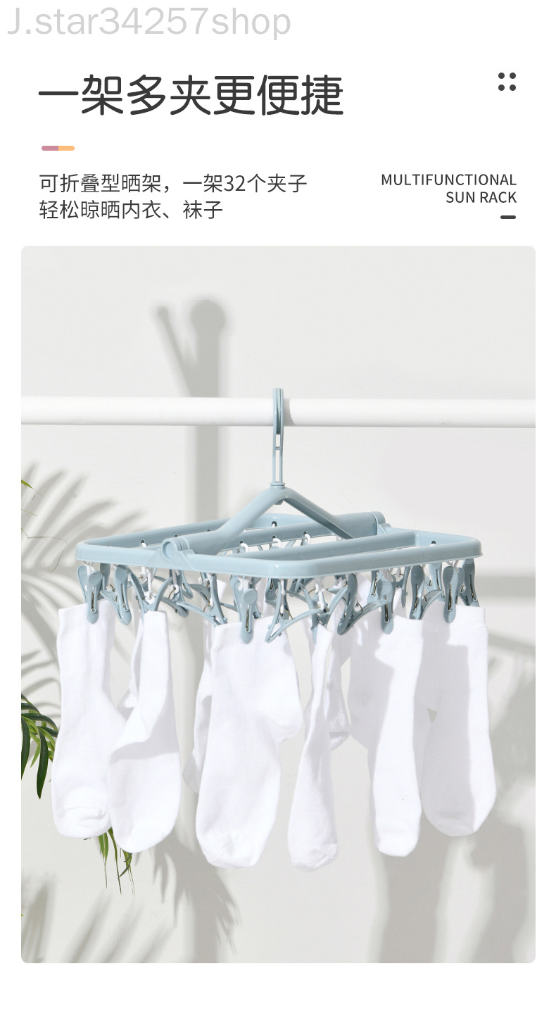 32夹折叠衣架方形多头晾衣架多夹子加厚内衣晒袜子架儿童成人塑料