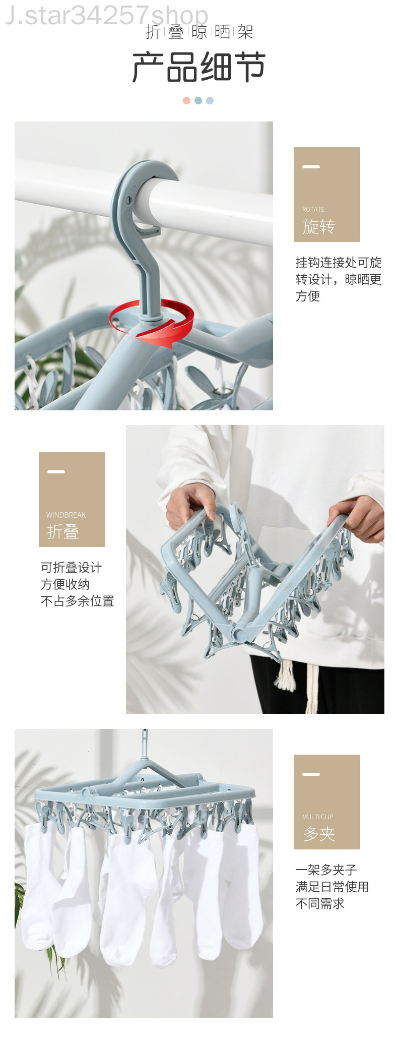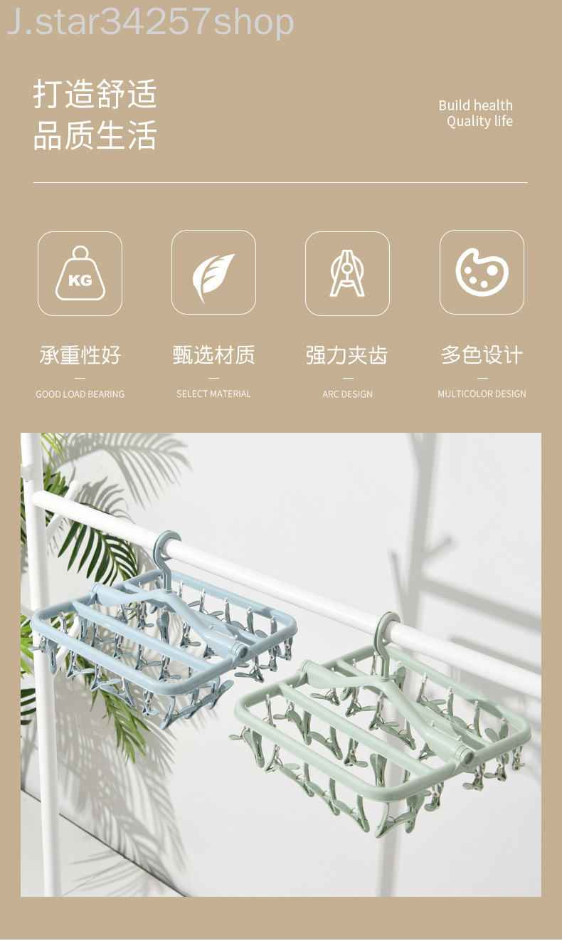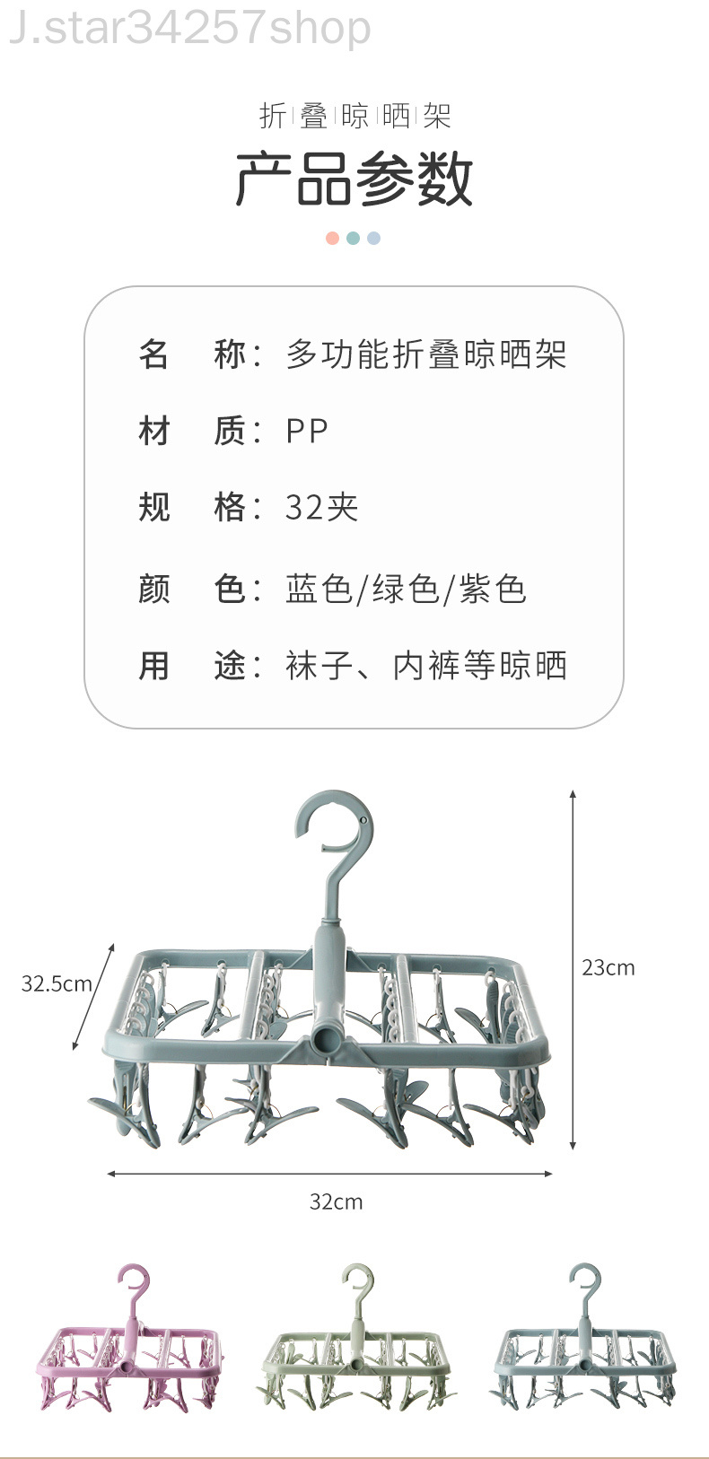 32夹折叠衣架方形多头晾衣架多夹子加厚内衣晒袜子架儿童成人塑料