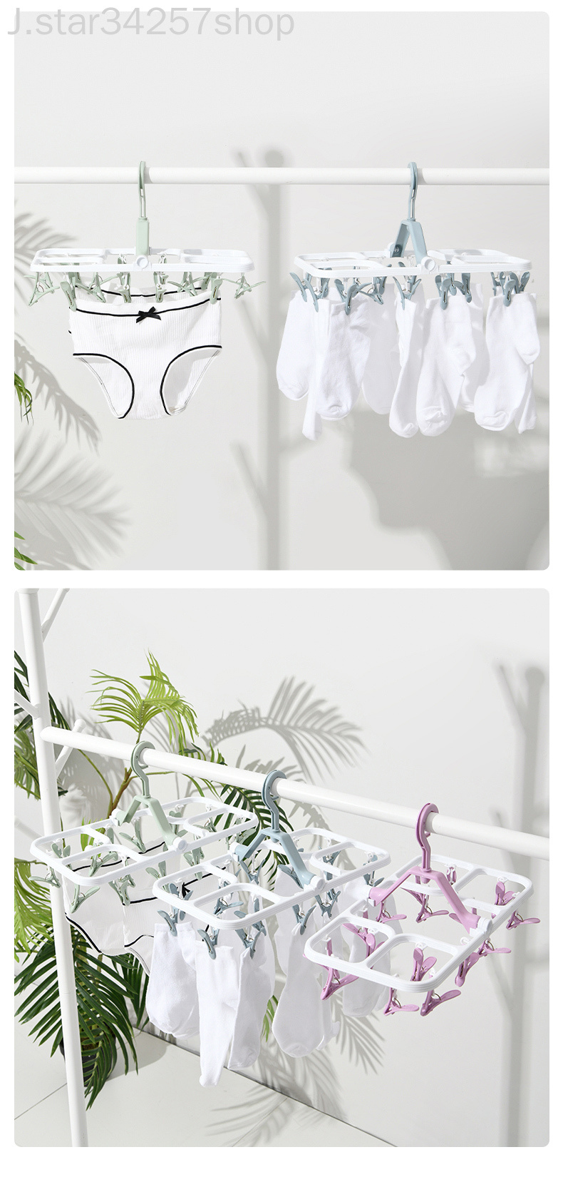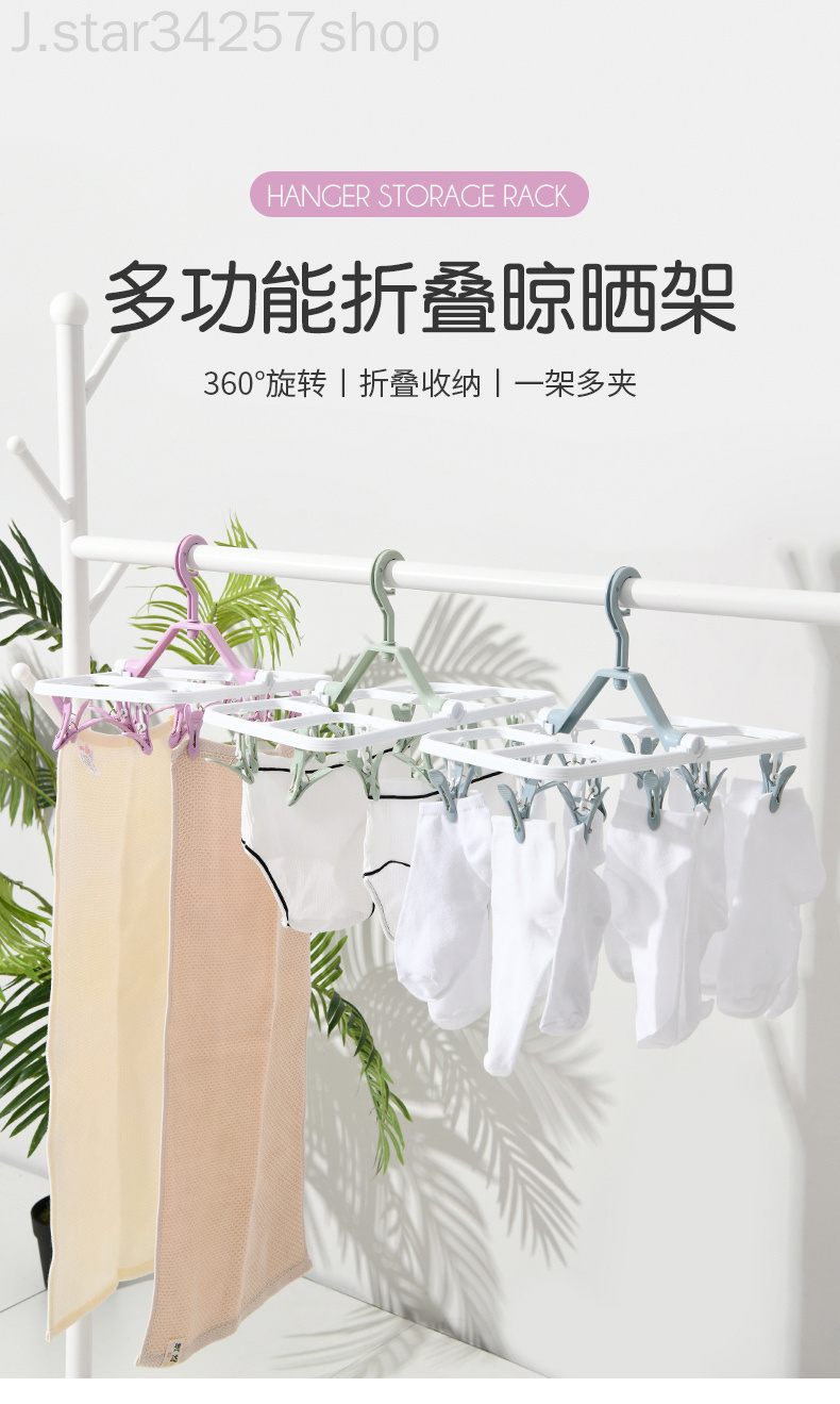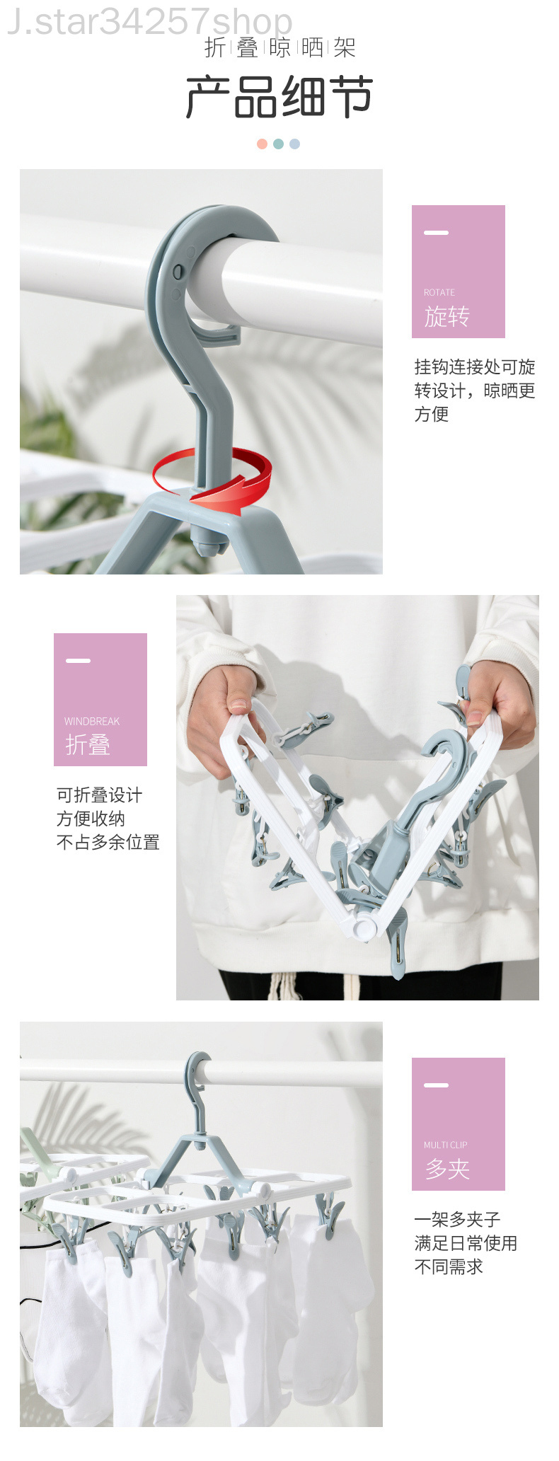 家用多功能挂钩宿舍晒袜子衣架多夹子防风晾衣架塑料可折叠衣架