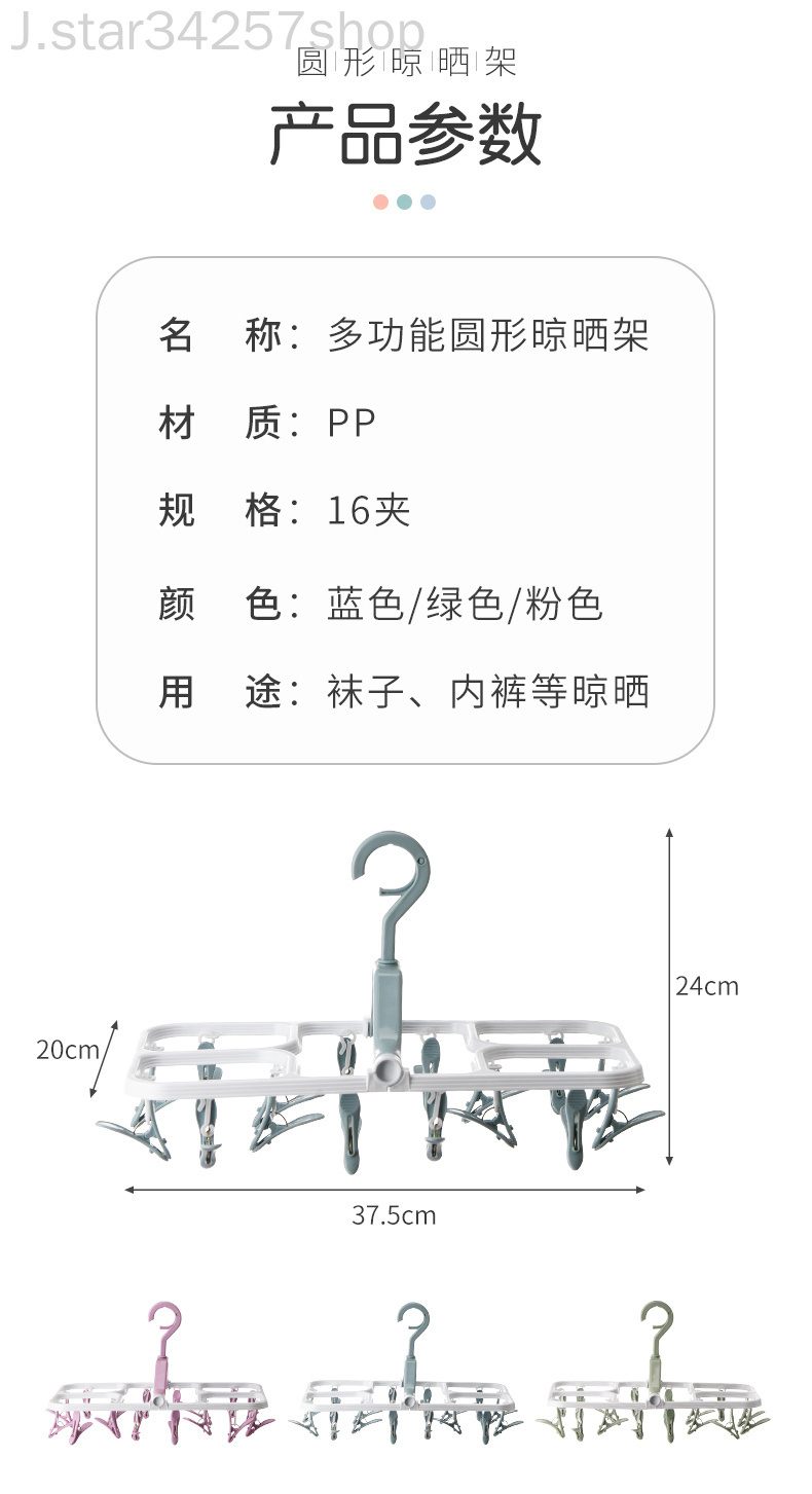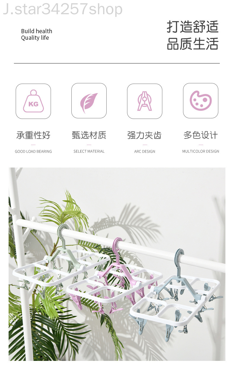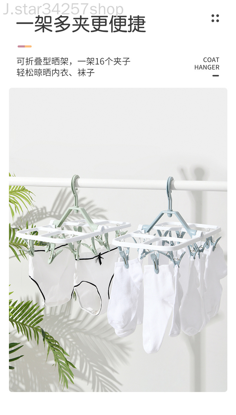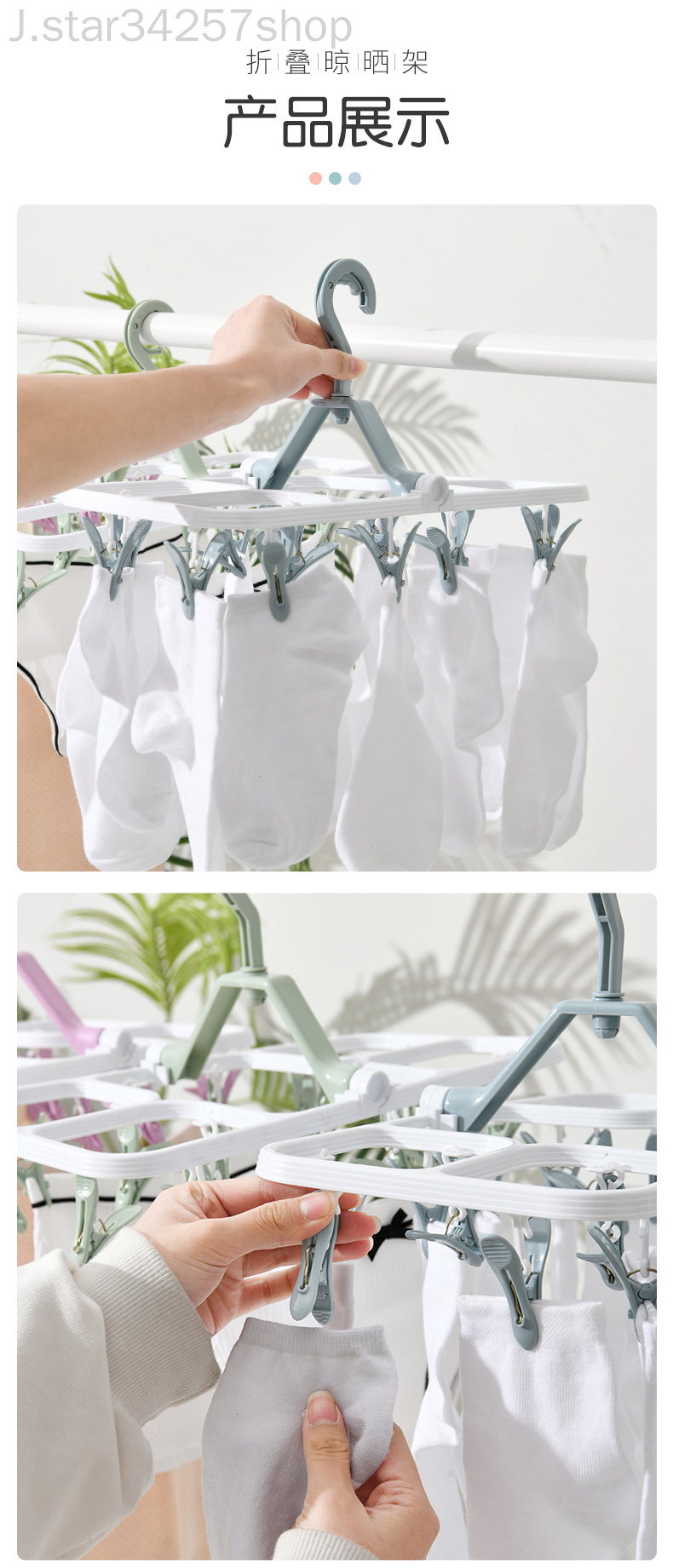 家用多功能挂钩宿舍晒袜子衣架多夹子防风晾衣架塑料可折叠衣架