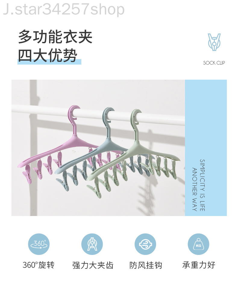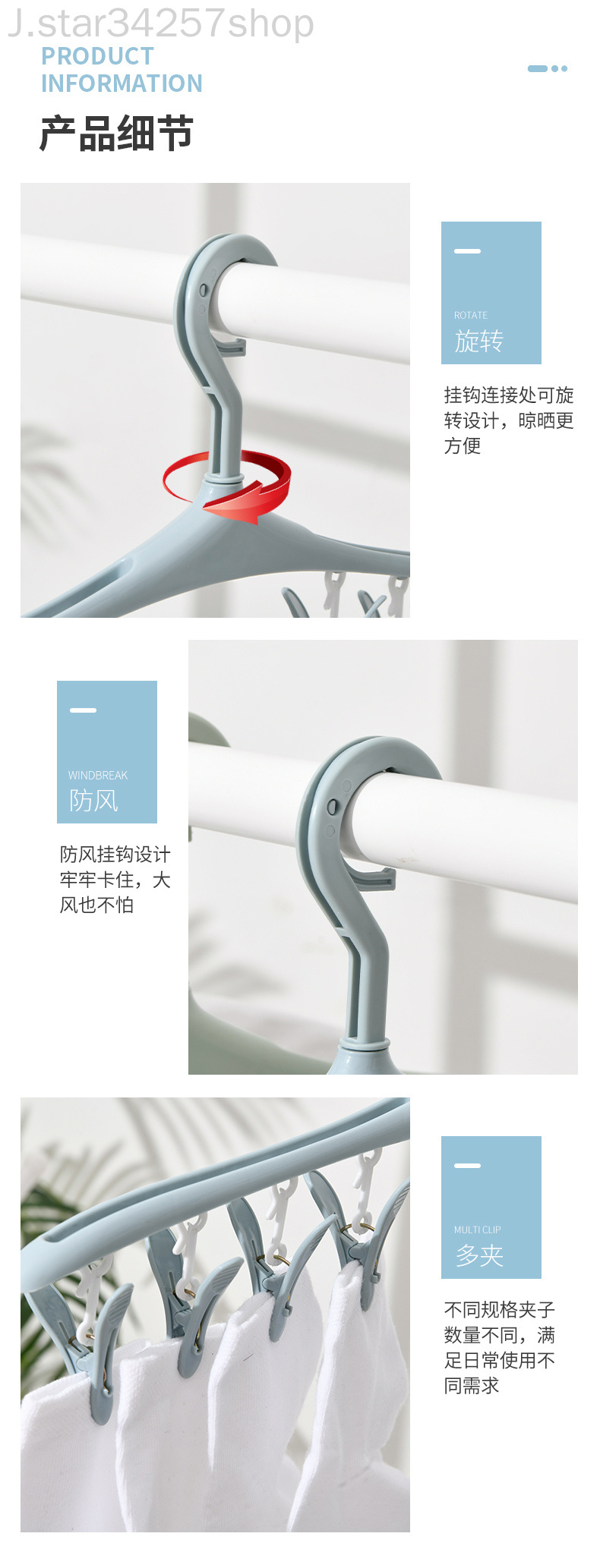 多功能塑料防风晾衣架便携户外出差旅行多夹子衣架内衣袜子晾晒架