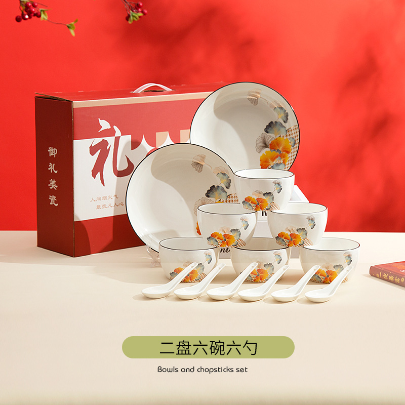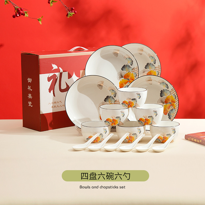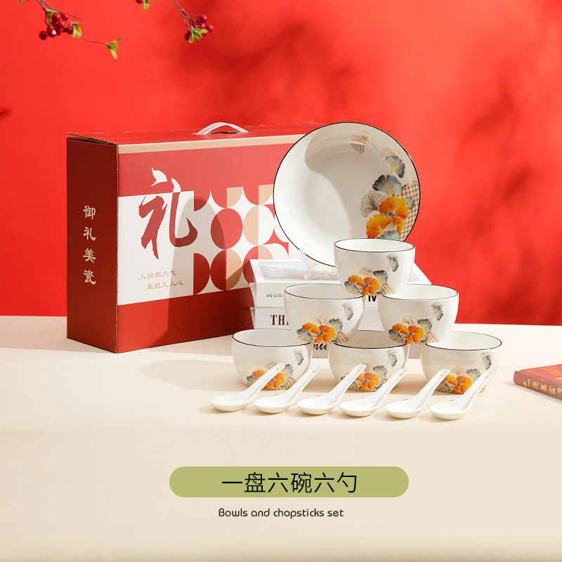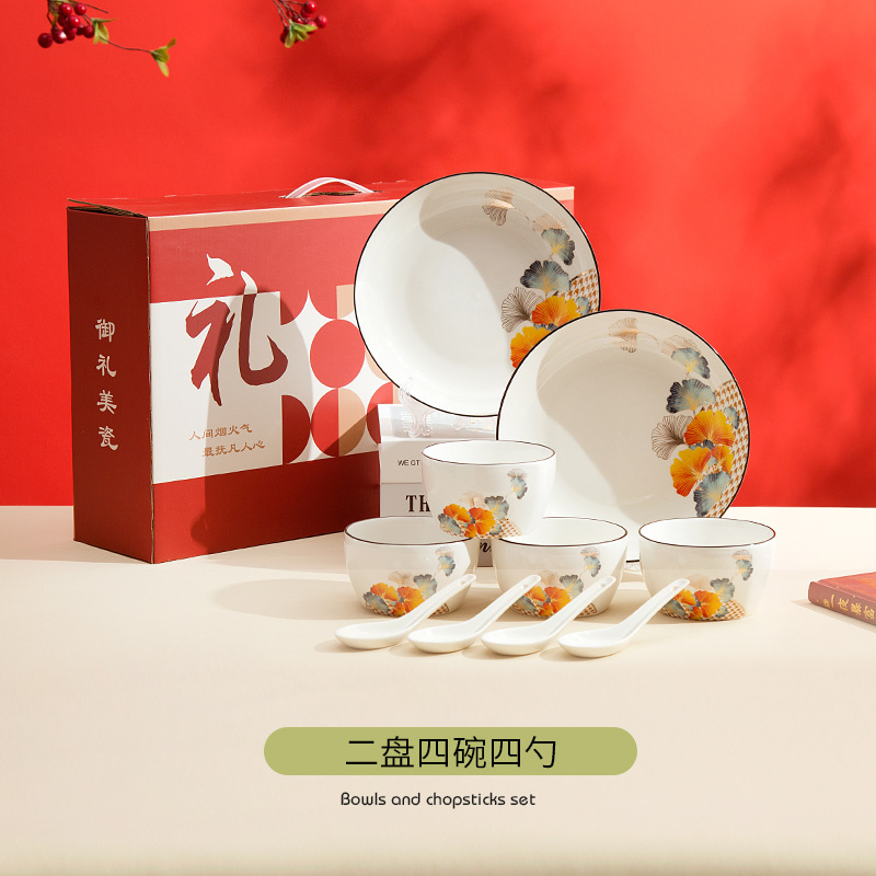 gift set, bowl, spoon, plate, portable set, light luxury, high-end gift box, festive opening gift