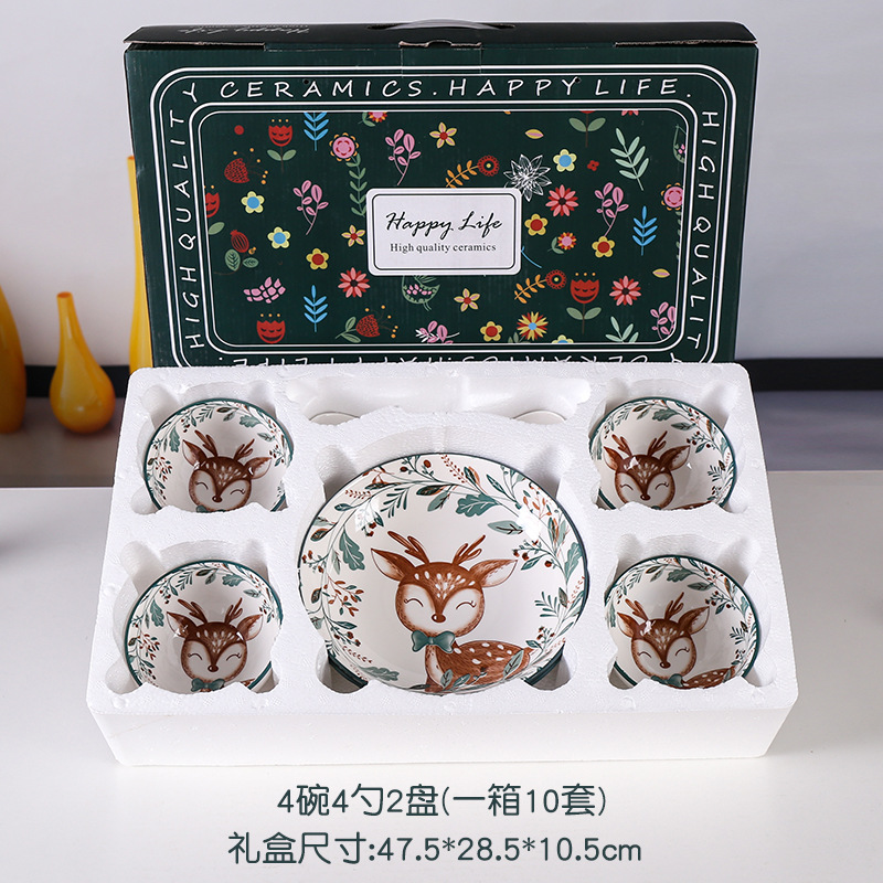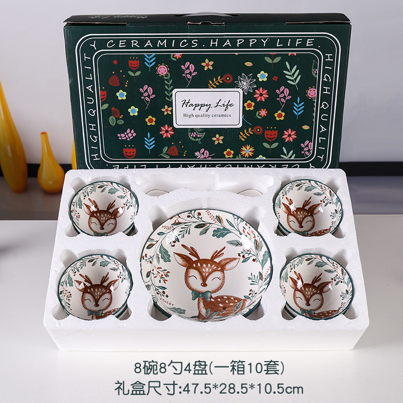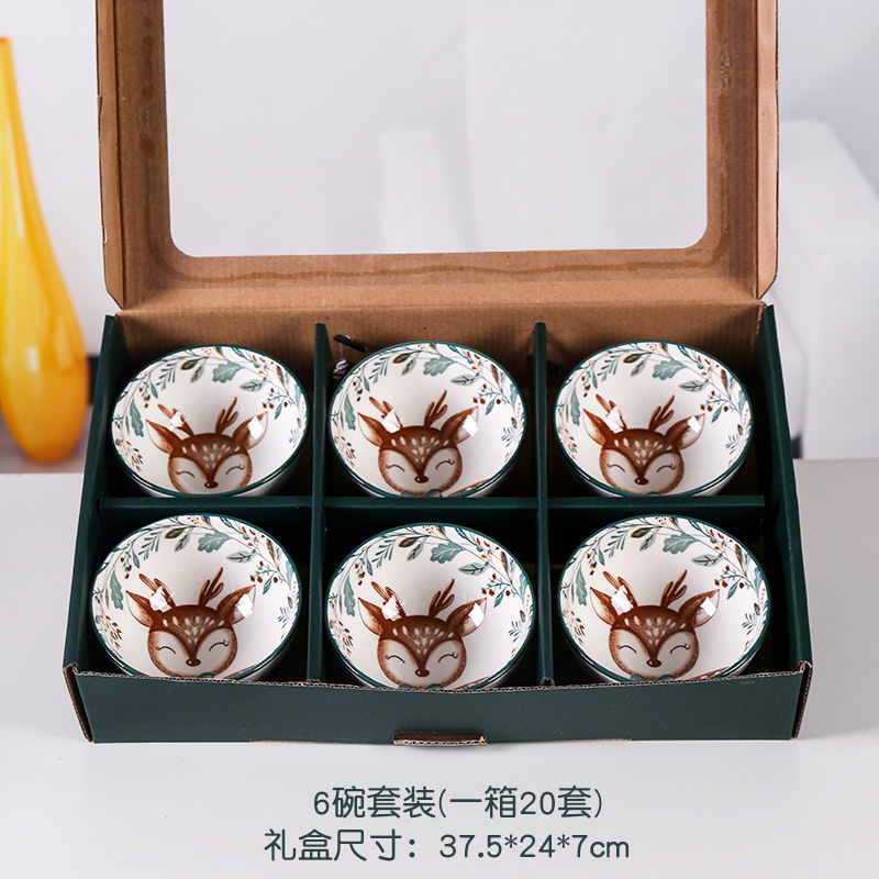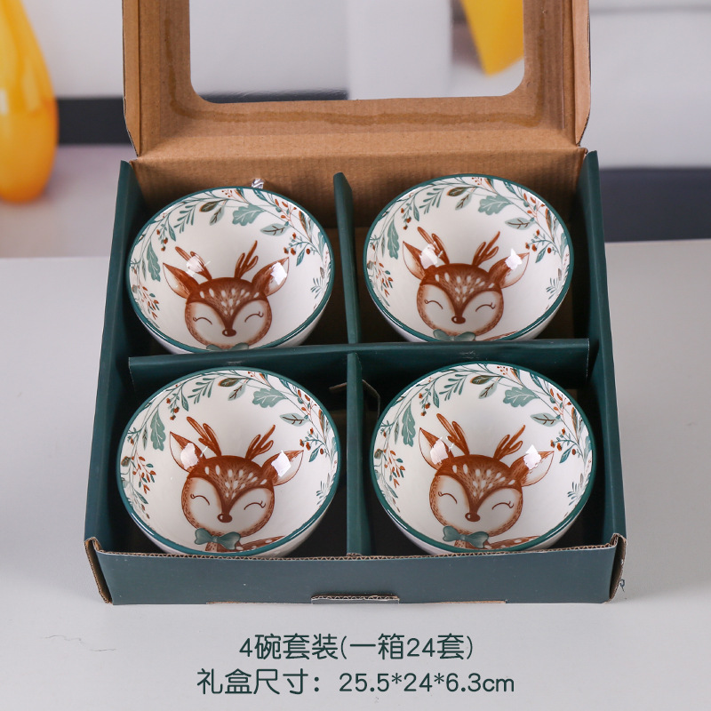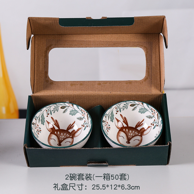 森林小鹿陶瓷碗礼品碗 青花瓷餐具 礼盒装碗盘活动送礼 加印 logo
