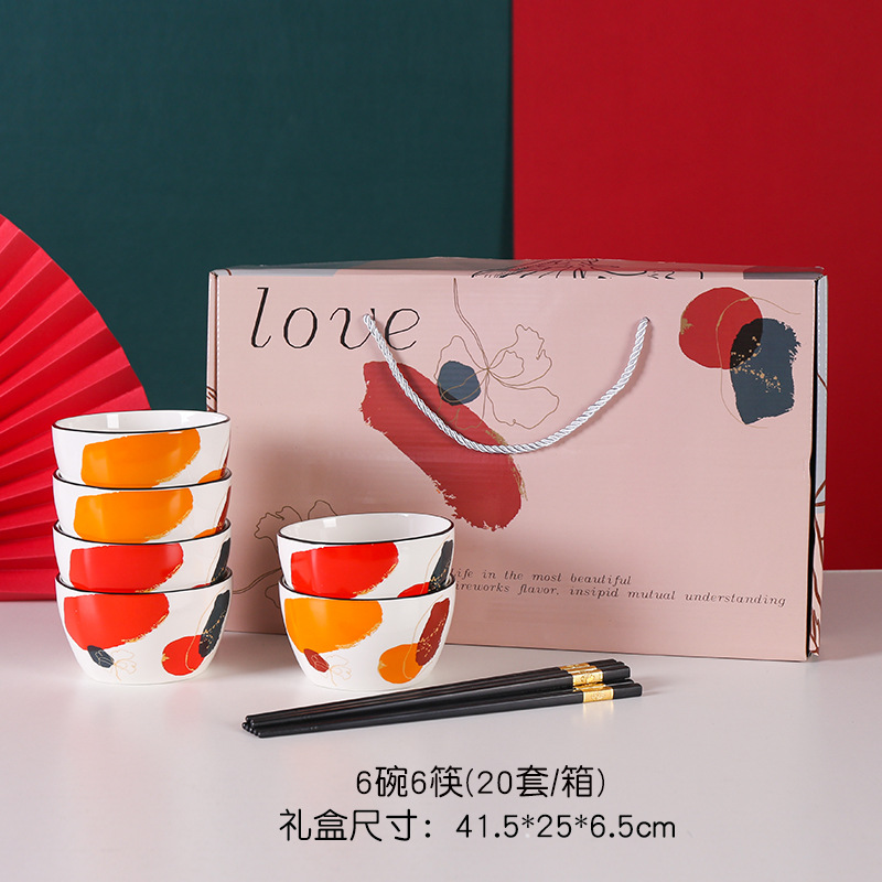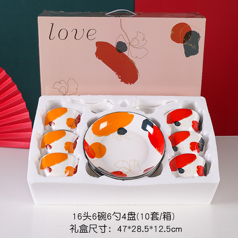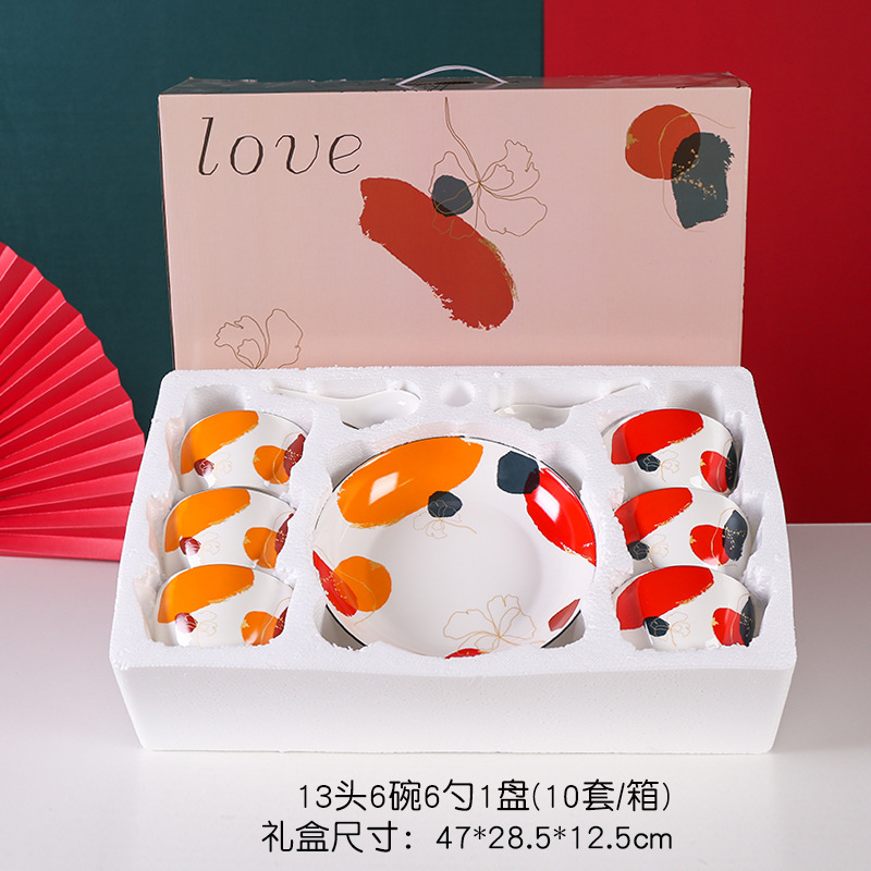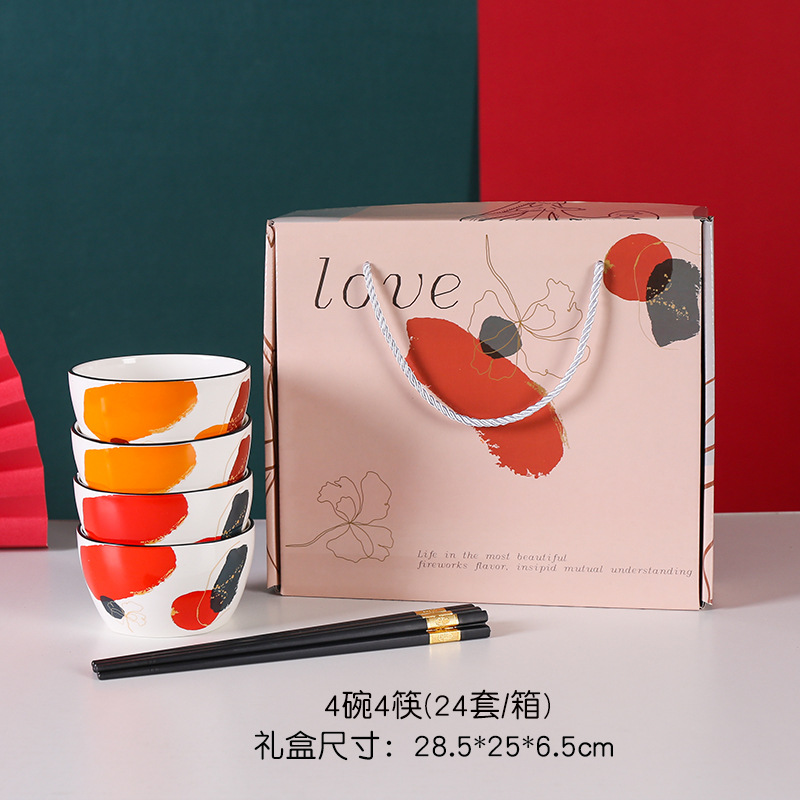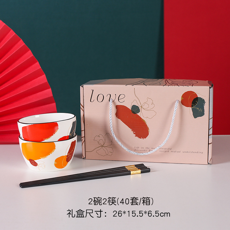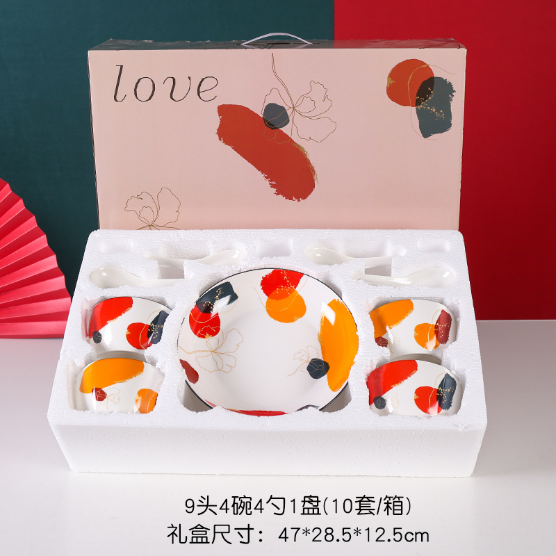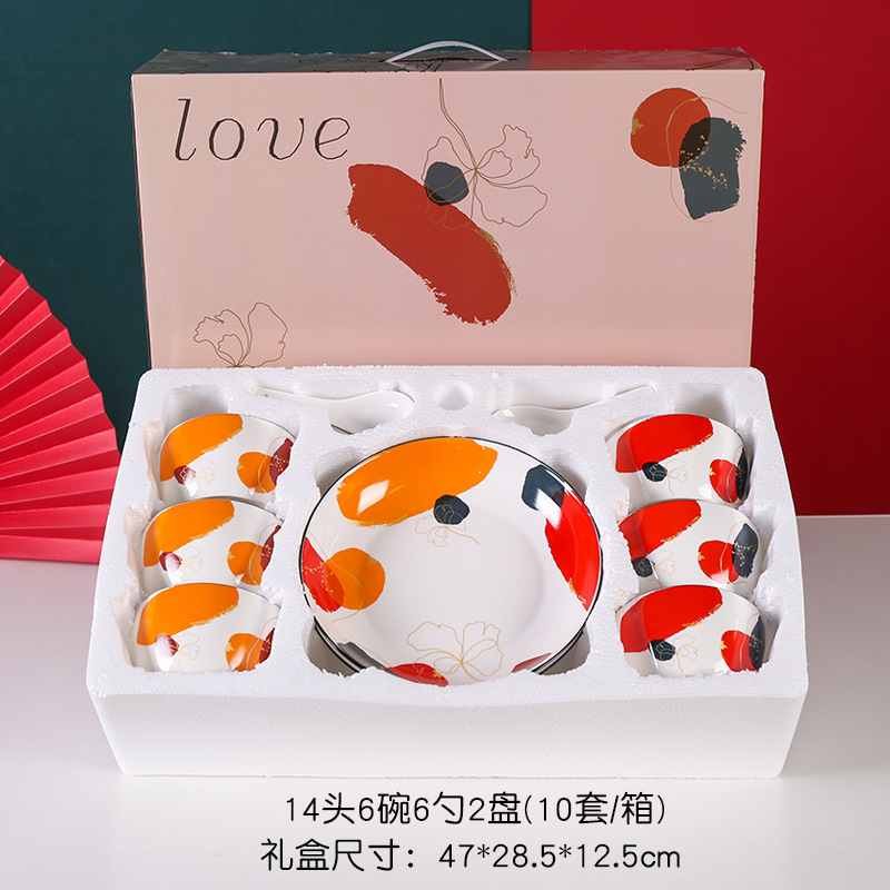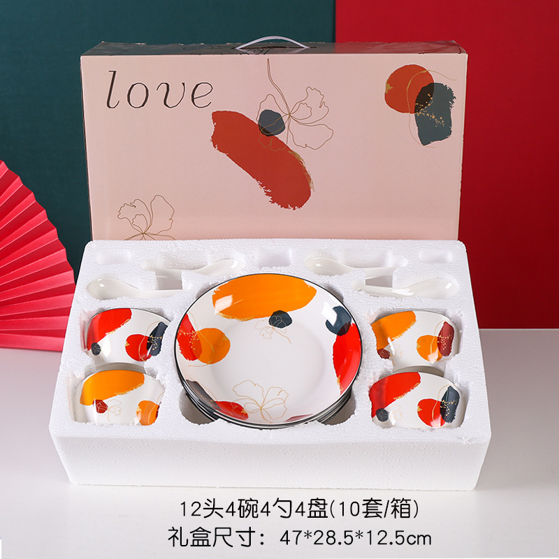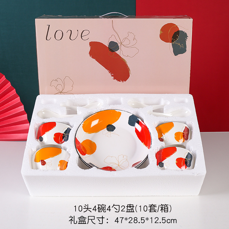 新品轻奢之色碗筷碗勺盘套装礼品彩盒装高档大气加印logo礼盒手提