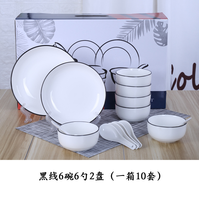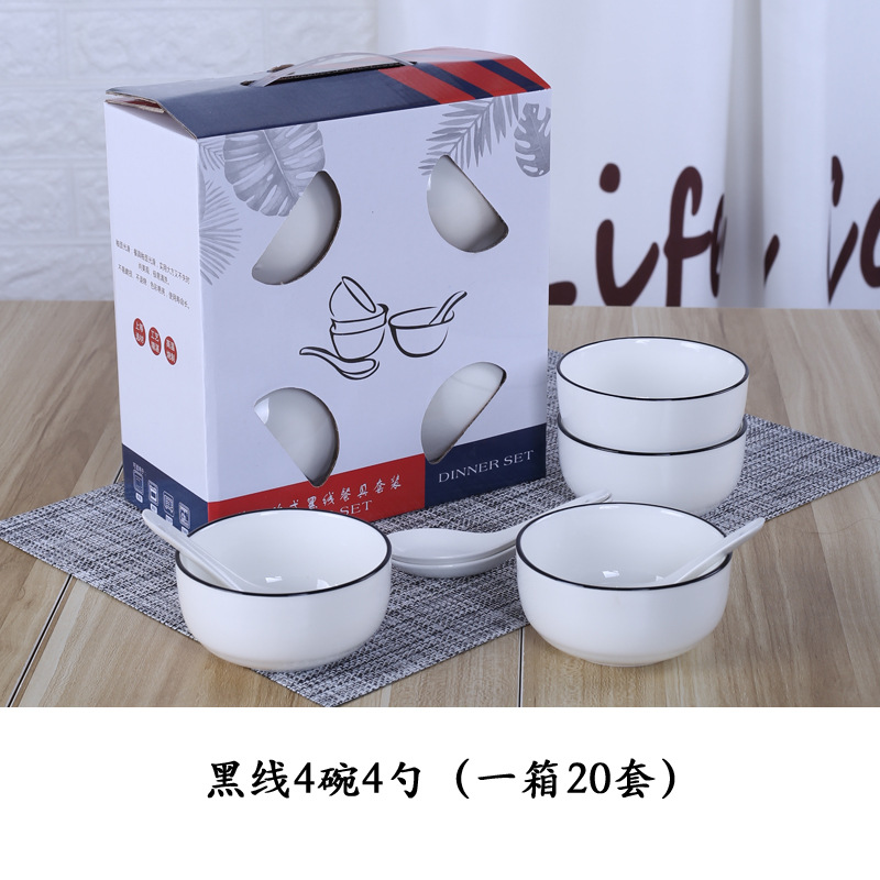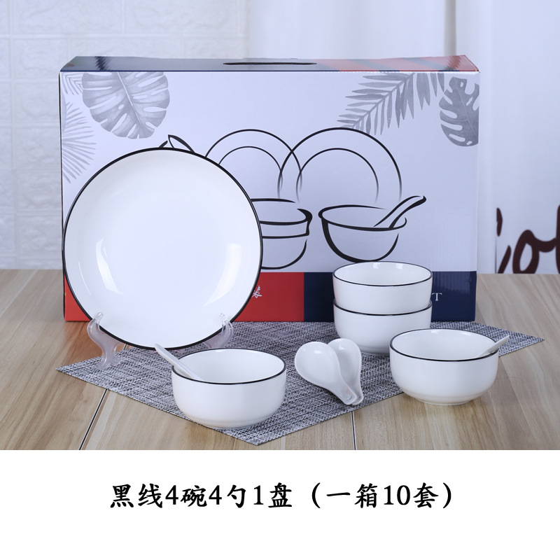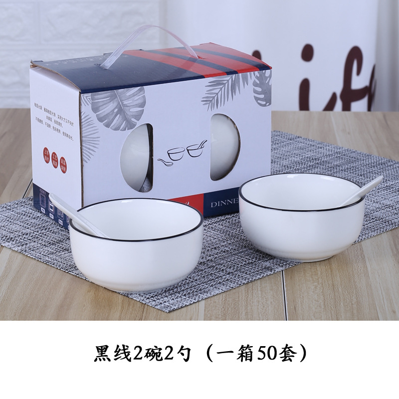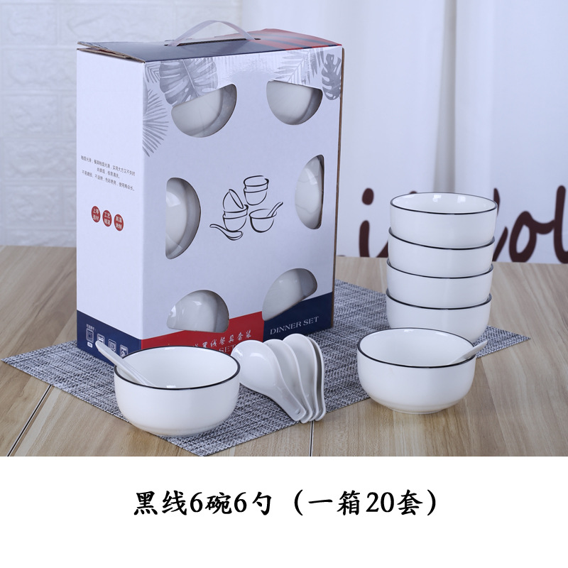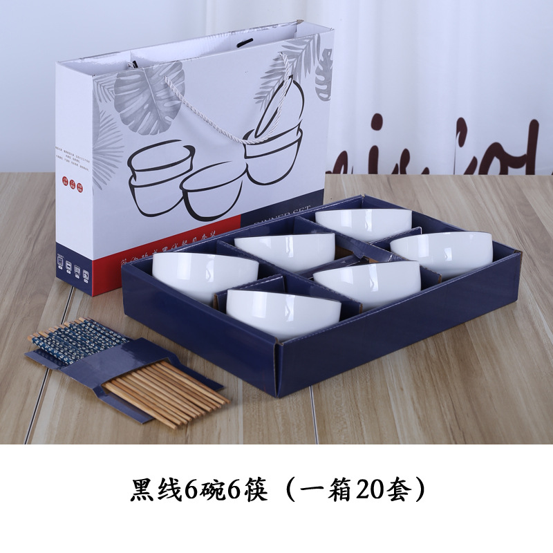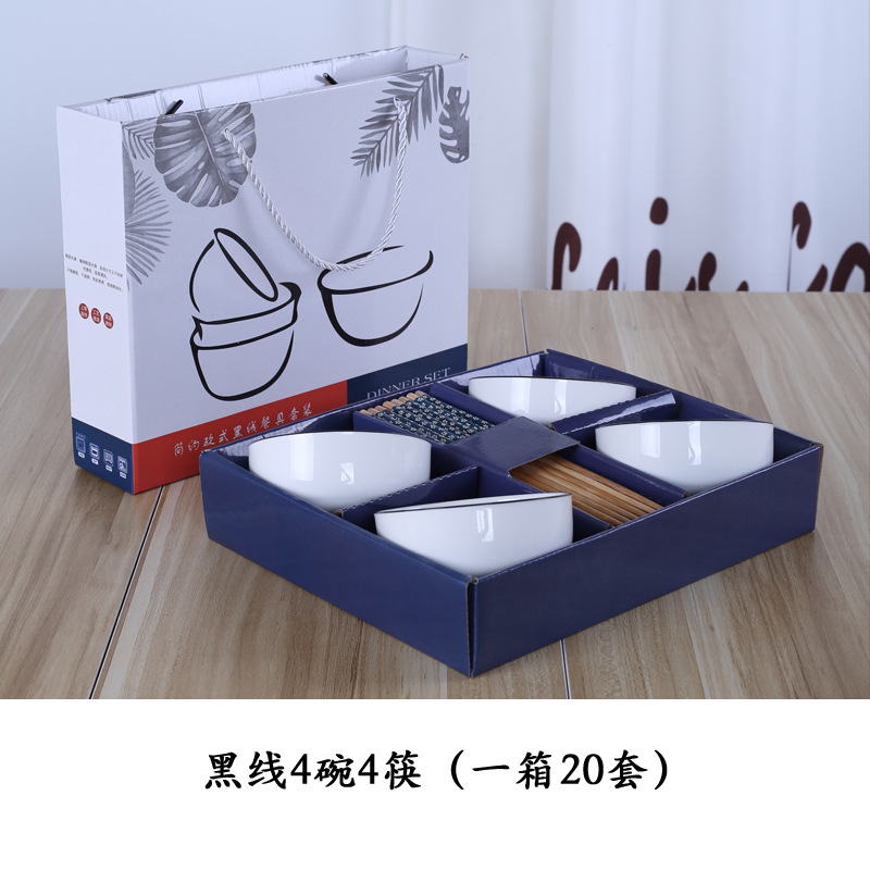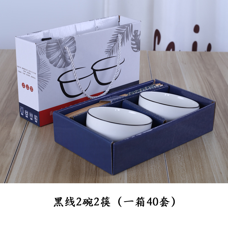 创意黑线碗筷勺青花瓷套装 赠品礼品盒套装碗盘 活动礼品碗筷批发