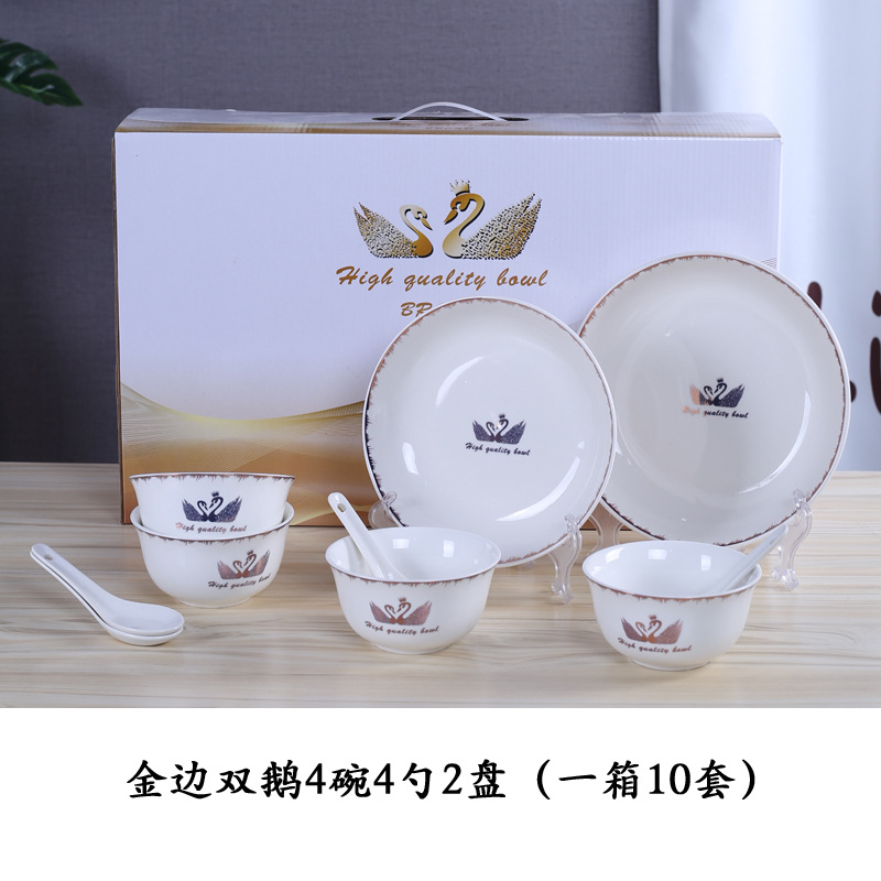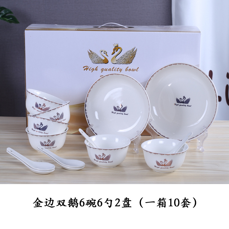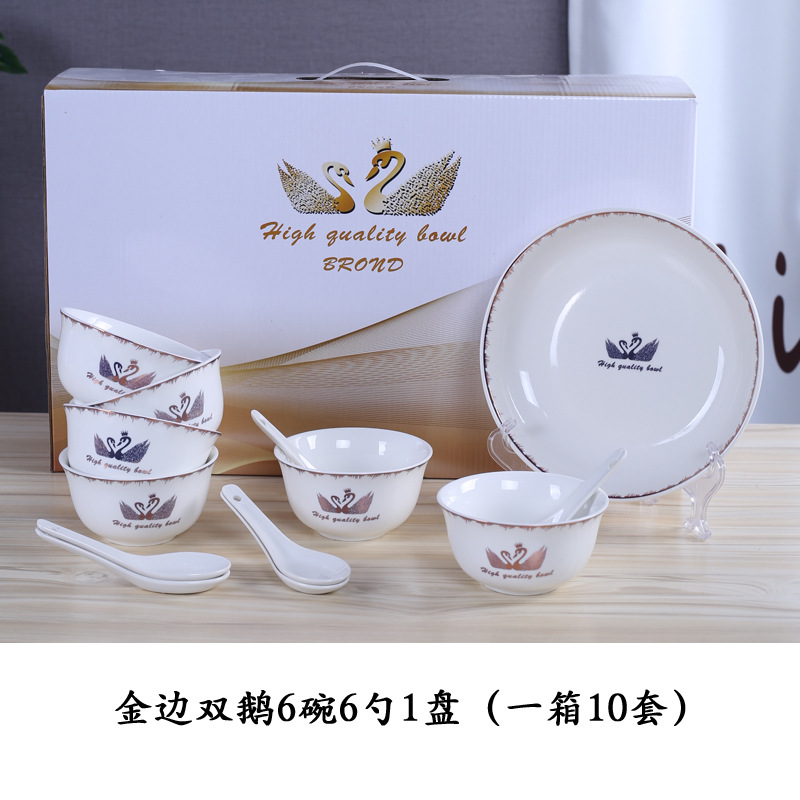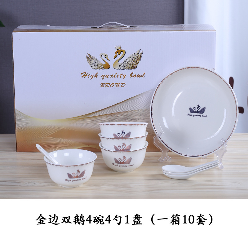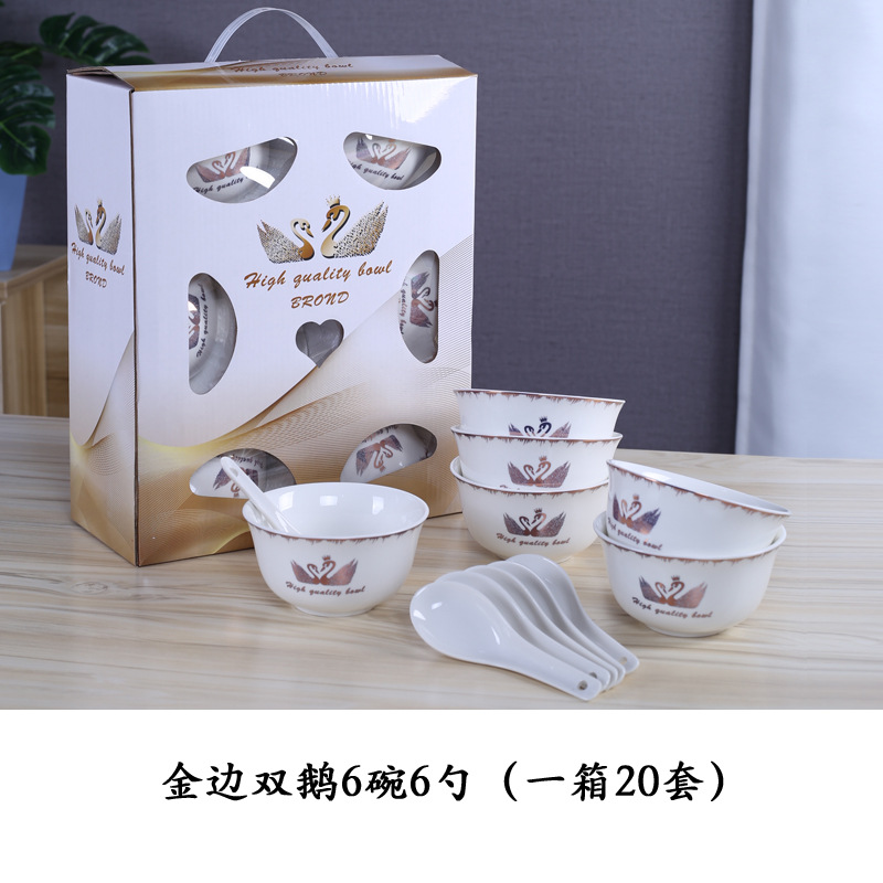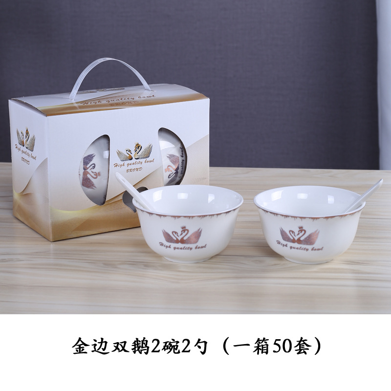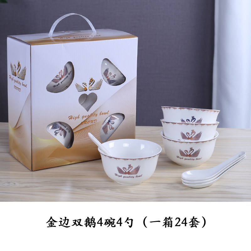 金天鹅瓷碗套装 陶瓷碗勺套装 开业赠品 会销礼品碗餐具批发