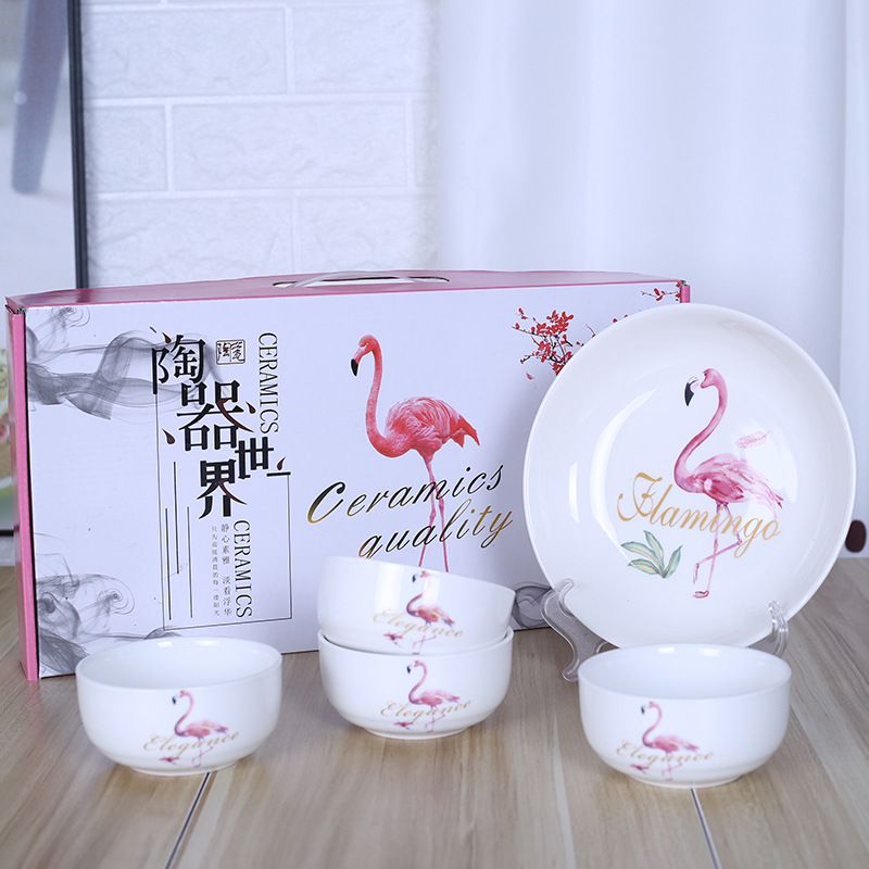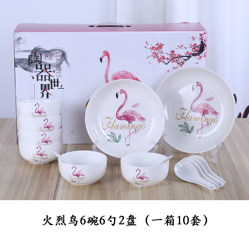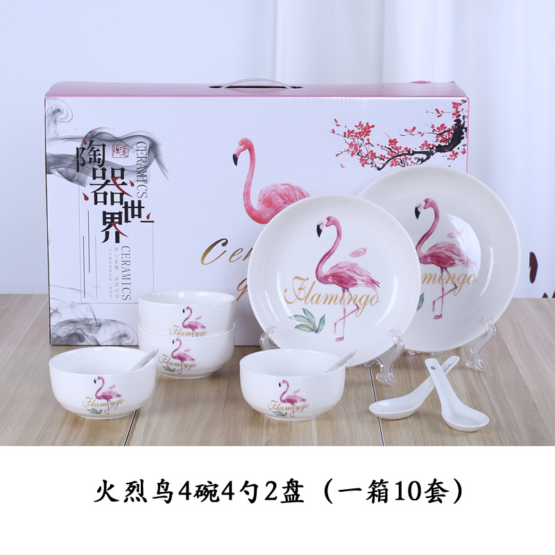 青花瓷碗勺 寿碗 碗筷套装 火烈鸟碗 小礼品 餐具套装礼品加印log