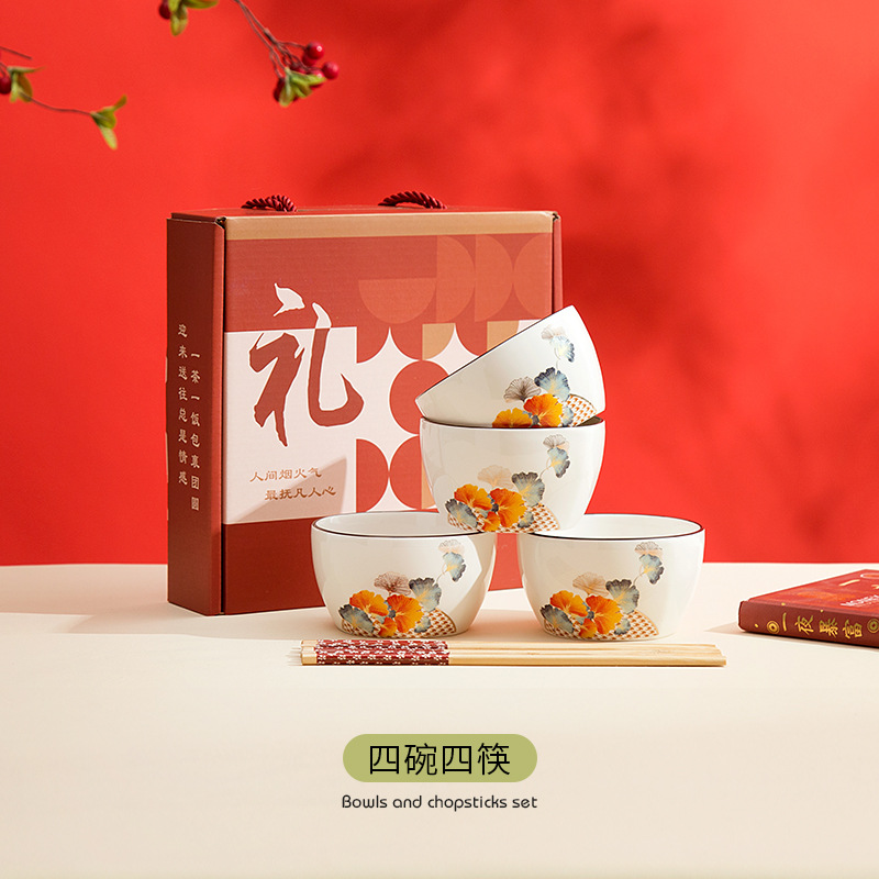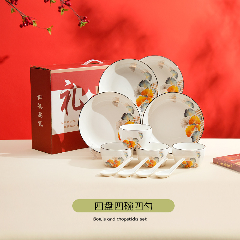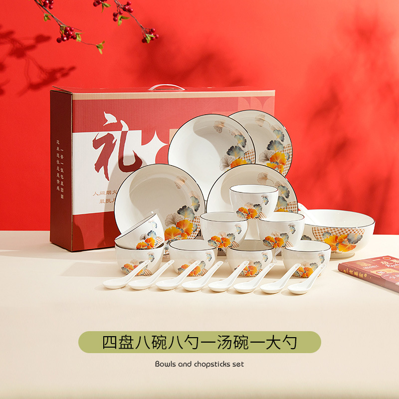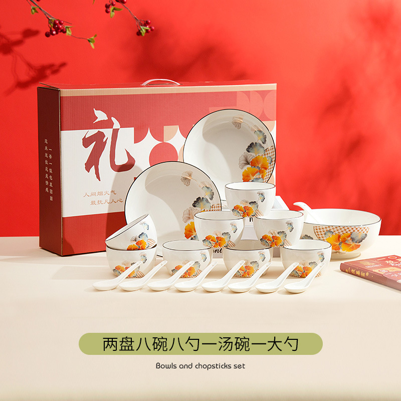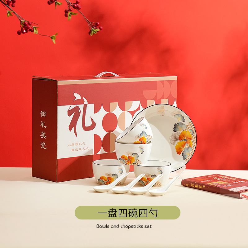 礼尚往来碗筷礼品套装碗勺盘手提套装轻奢高档礼盒装喜庆开业送礼