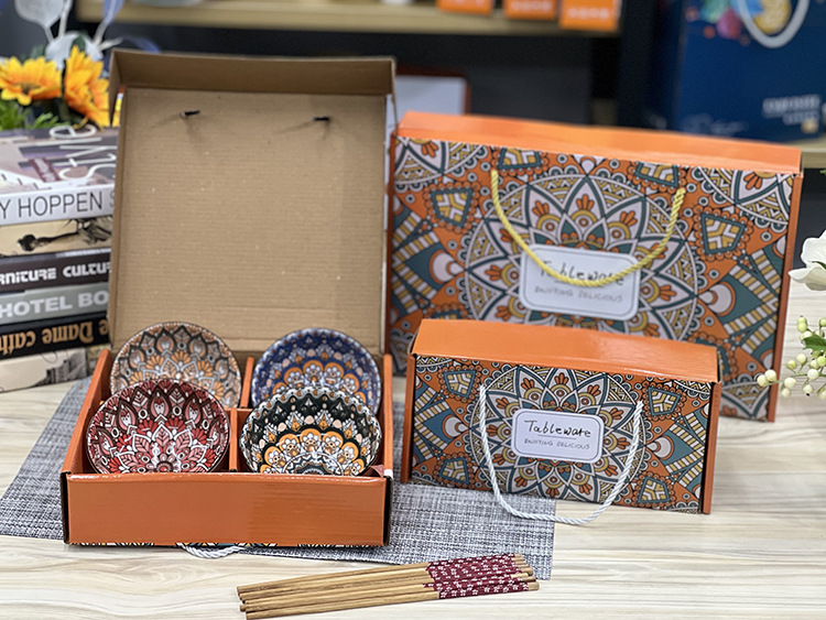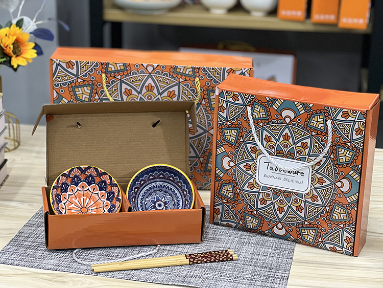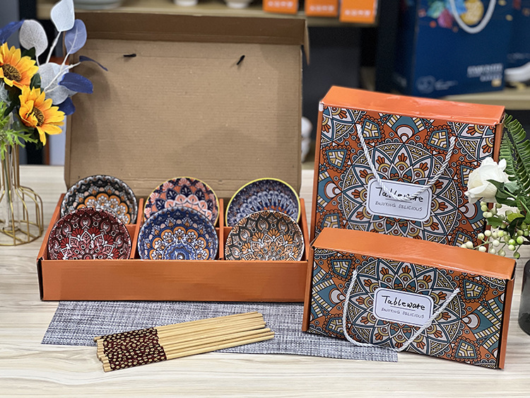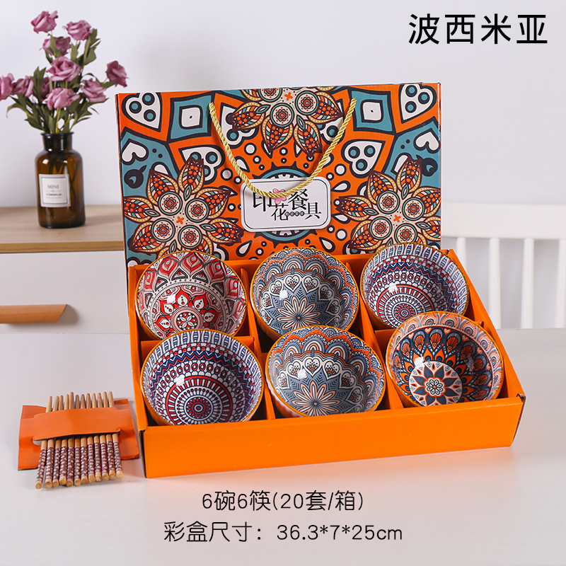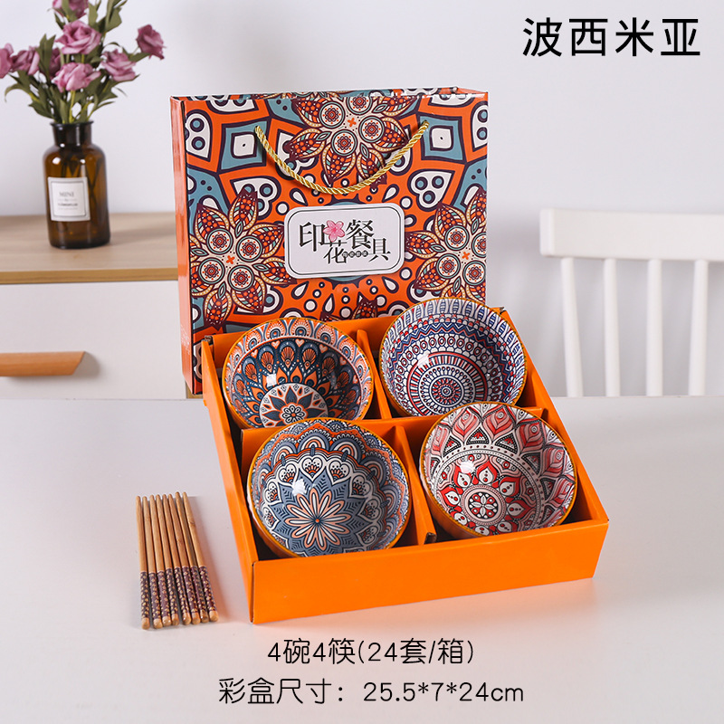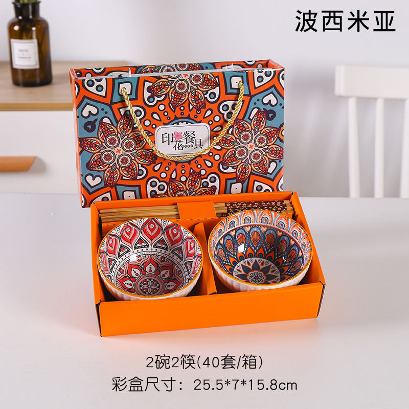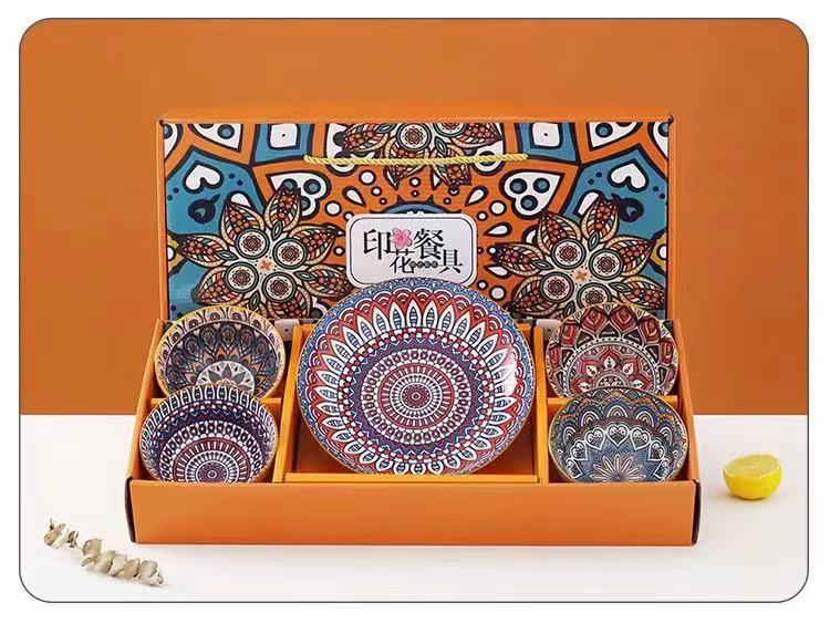 欧式波西米亚陶瓷碗餐具碗筷组合套装家用公司送礼加印logo礼盒装
