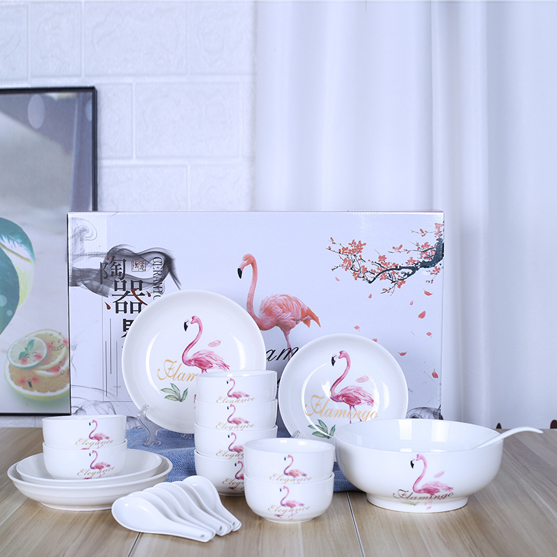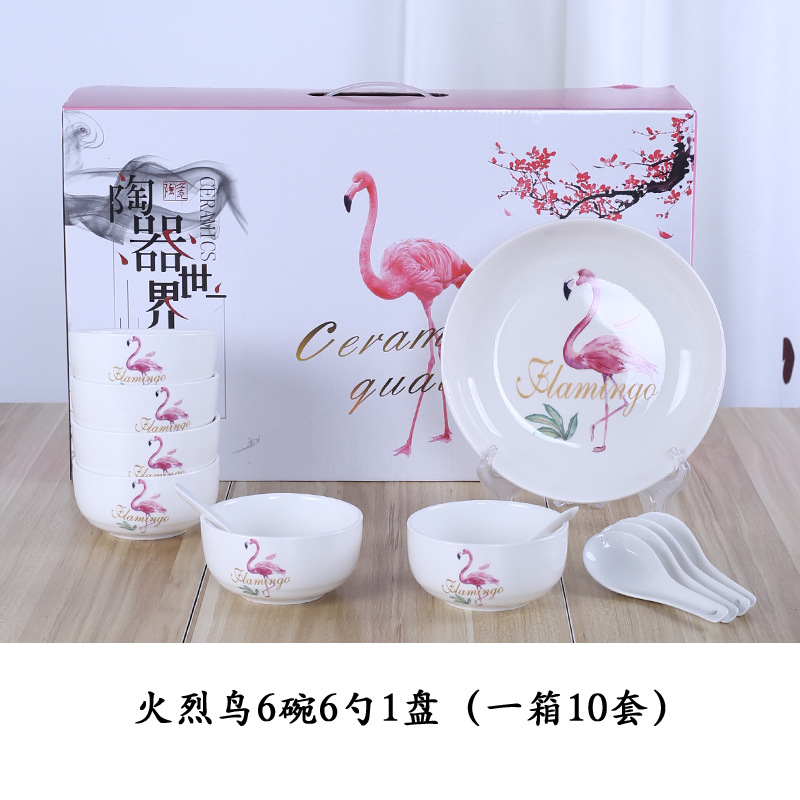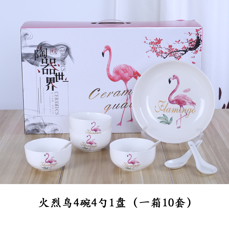 青花瓷碗勺 寿碗 碗筷套装 火烈鸟碗 小礼品 餐具套装礼品加印log