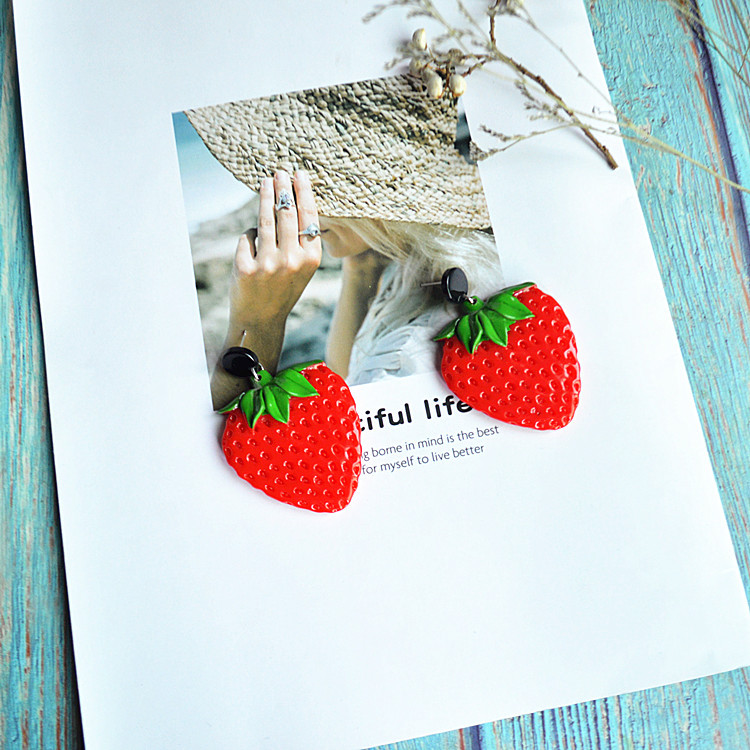 韩版亚克力板材水果耳环西瓜柠檬草莓夏日大尺寸个性夸张樱桃耳环